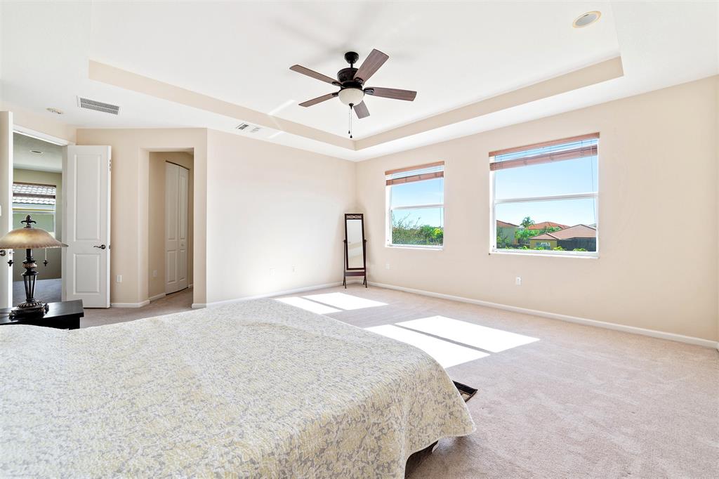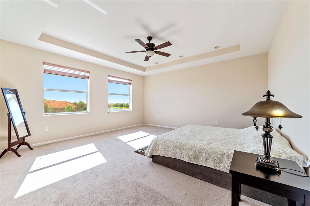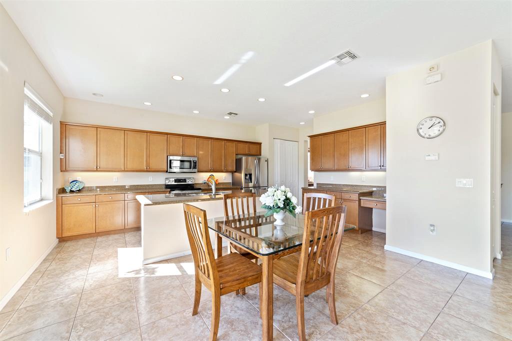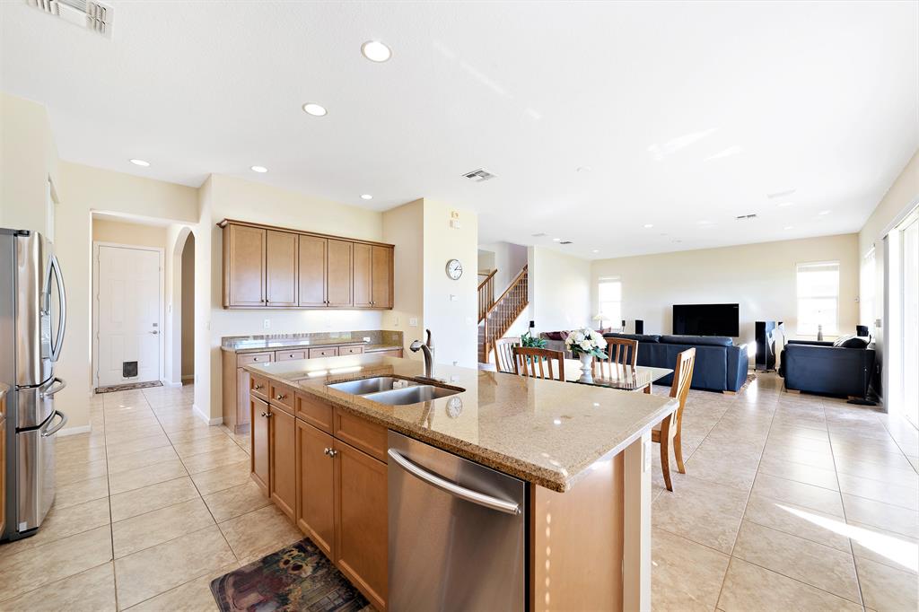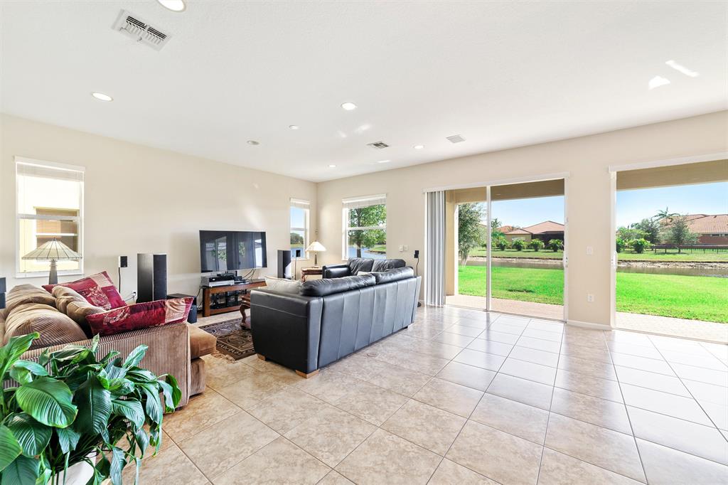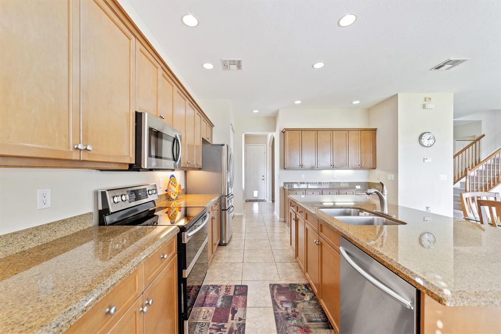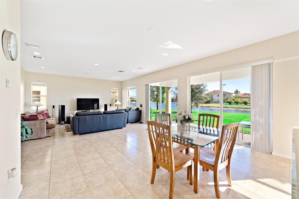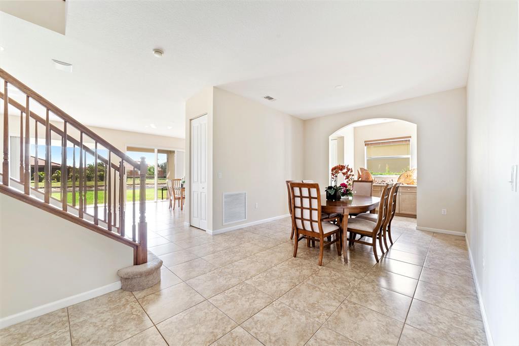 Phenomenal, meticulously maintained 4 bedroom plus den, 2.5 bathroom, 2-car garage home with spectacular lake view! Awash with natural light, the first floor boasts 10' ceiling with recessed lighting, and gorgeous neutral color 18'' tile. Open-layout kitchen is every cook's dream, and is equipped with brand new top-of-the-line stainless steel appliances, stunning granite counter tops and plenty of 42'' light wood cabinets finished with molding, large kitchen island, and a pantry closet. The kitchen conveniently opens to the family room and formal dining area, and is just steps away from the sliding doors leading to the fabulous outdoor area. Sit down and relax on the paved covered patio, and enjoy unobstructed lake view. The first floor offers half bathroom and a den that can easily be