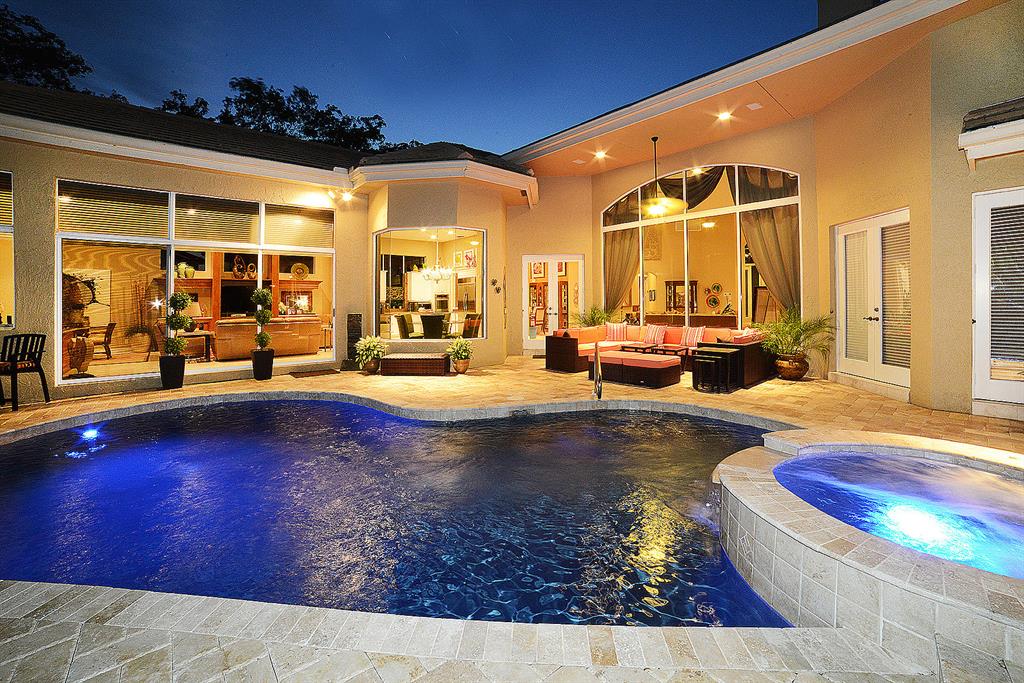 Elegant Estate home on quiet street with great curb appeal offers 4 bedrooms, 4 1/2 bath plus an office, all on one floor, with a 3 car garage, New Roof (2017) and 2 New A/C's. Marble floors in living areas and hardwood floors in all bedrooms. Formal living room, dining room, and large family room with granite bar are perfect for entertaining. The Master wing features his/her baths, large walk-in closets,fireplace, decorative tray ceilings, and French doors that open to the beautiful pool/spa and patio. The split bedroom plan includes a separate wing with 3 bedrooms and 2 baths. The open kitchen offers a large granite center island and stainless steel appliances. Beautiful breakfast nook overlooks the completely private pool area with a state of the art computerized heated salt water pool.