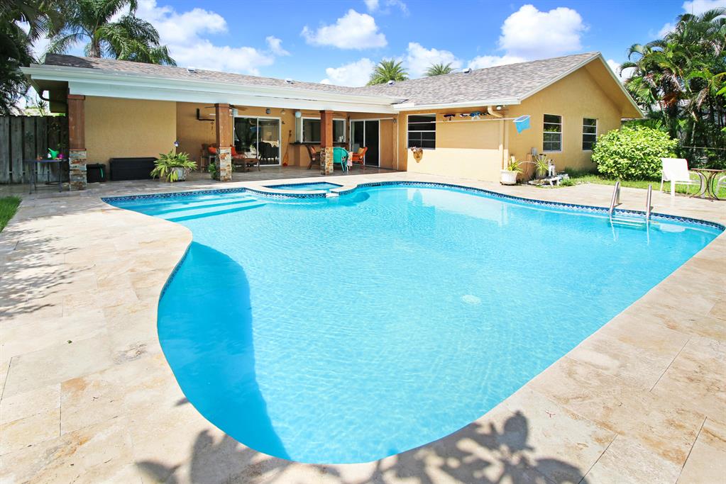 Pool home positioned on a peaceful canal in West Boca Raton. Enjoy your own slice of paradise in this lovely 4 bedroom, 2 bathroom ranch home. The owners are relocating after investing in a spectacular, travertine pool deck and remodel. The kitchen is spacious and upgraded with beautiful wood cabinets and quartz counters. The roof was replaced in November 2016. No carpet- the floors are durable, Mexican tile throughout This home is ready for you!Additional features are full impact protection and the AC was replaced in 2013. West Boca Raton is desirable for its proximity to every convenience, Excellent schools, and wonderful outdoor spaces.
