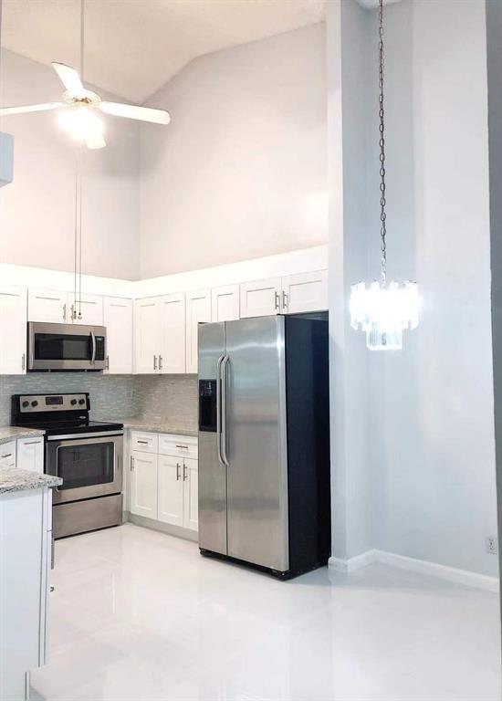 Spacious and beautiful 2/2 Townhome with 1 car garage and high ceiling. Located in the desirable community of Boca Gardens. Freshly painted, new kitchen with soft-closing new cabinets and granite countertop, new bathroom, new tiles. A/C was replaced in 2015. Washer & Dryer less than 2-years old. Enclosed porch with privacy, feels like a single-family home. Quiet neighborhood with three community pools, fitness room, tennis, basketball, and playground for kids. Great location, A Schools, close to Turnpike, shopping, and restaurants. All measurements are subject to errors.