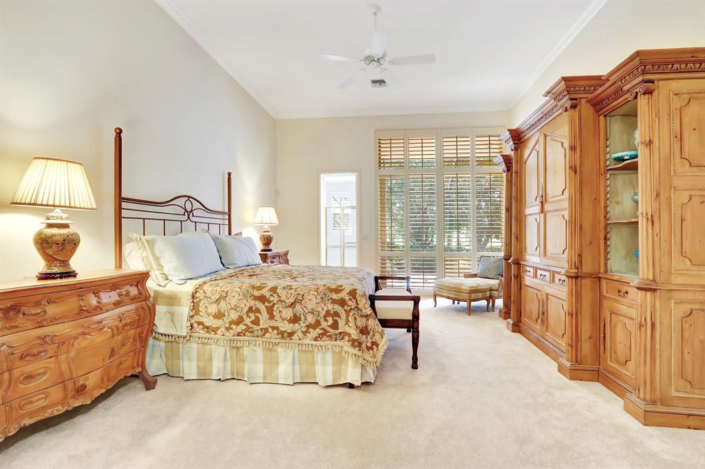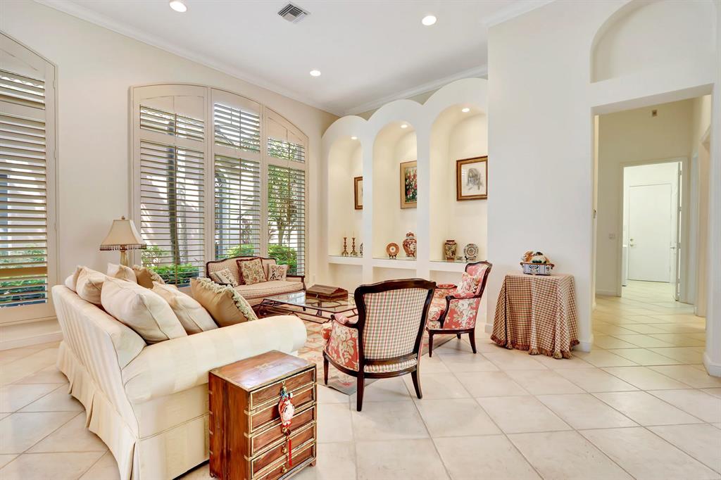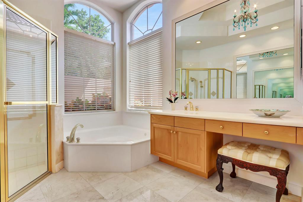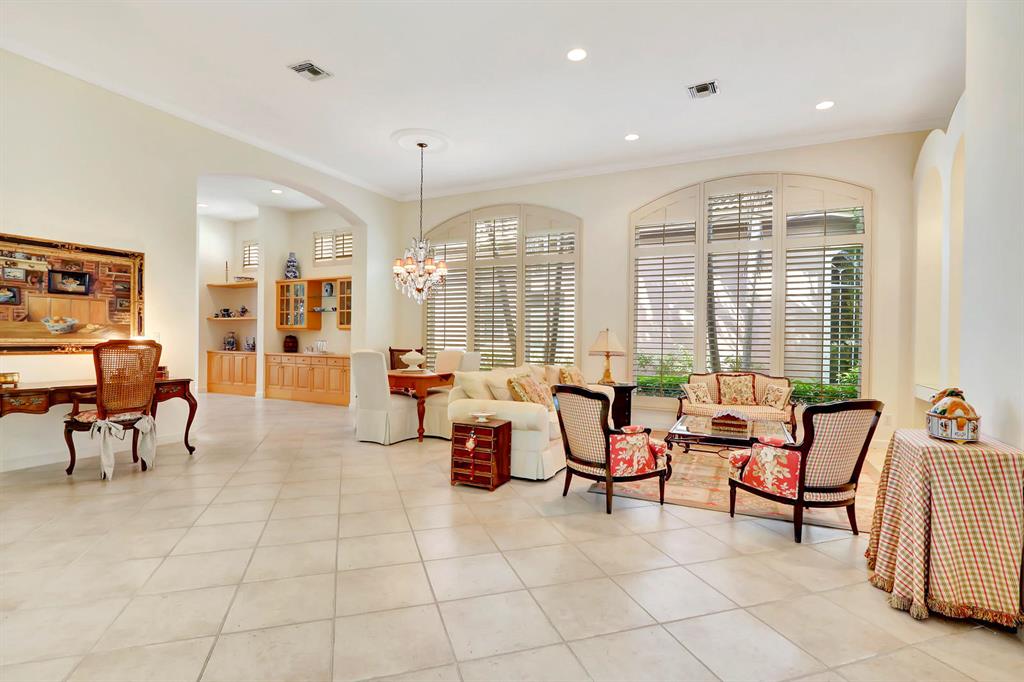 This beautiful large modified Santa Barbara model home features 4 bedrooms/4 bath; Over 4000 sf under air; A/C 2015; Crown molding; In-law suite; Plantation shutters; Custom built-ins; His/Hers walk-in closets; Built in safe; Coffered ceiling in master bath; Freshly painted; Marble counters; Reverse osmosis water system; Washer 2016; E Door Opener 2017; Eat at bar; Views of the Arthur Hills golf course, clubhouse and pond. NO MEMBERSHIP REQUIRED!!This home is open & inviting, ready for easy entertaining and living the Florida lifestyle. The extra large eat-in kitchen and great room overlooks your private screened in patio with a heated SPA (plus room for a pool) with entrances from both the main area and ONE of the master bathrooms.**Chandelier in master bath not included