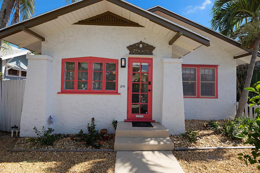 This charming 2 bedroom 2 bath Craftsman Cottage is located in desirable historic Mango Promenade. The home's retained original charm includes hardwood floors, wood burning fireplace, French doors, and windows. There is natural gas, new tankless hot water heater, and range. A brand new 2nd bath is conveniently off the master suite with a French door from the bedroom leading out to the peacefully landscaped yard. Small artist studio in rear with electric and water ideal to be converted to third bedroom/ bath/ office. Walking distance to several great restaurants, The Norton museum, downtown WPB and a short bike ride over to Palm Beach Island and the beaches. Very motivated seller please bring offers!
