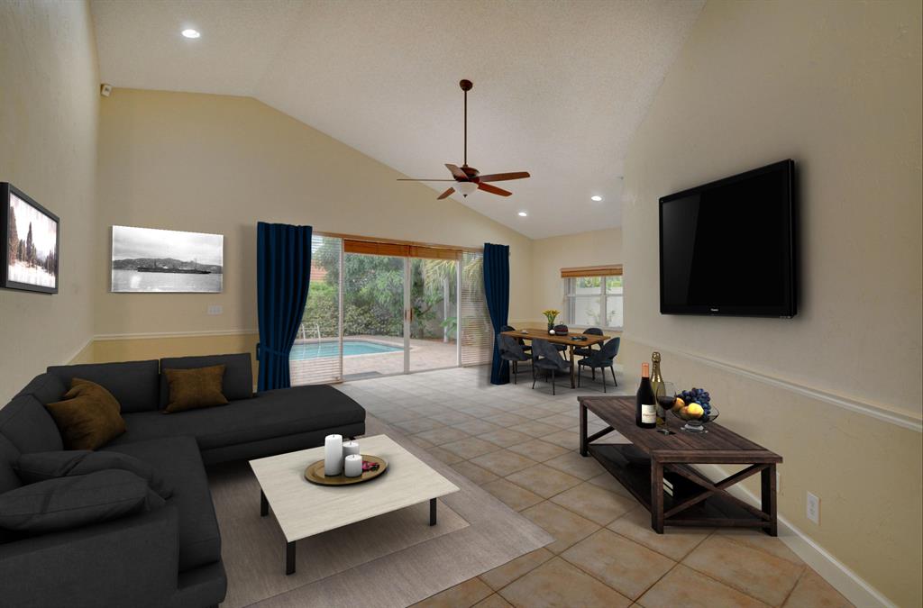 LOCATED IN THE HEART OF BOCA RATON, THIS UPDATED HOME SITS IN THE SMALL COMMUNITY OF PALLADIUM JUST OUTSIDE THE GATES OF BOCA POINTE COUNTRY CLUB. MEMBERSHIP IS NOT REQUIRED BUT AVAILABLE TO ANY NEW OWNER.THIS 2 STORY HOME OFFERS TILE FLOORS THROUGHOUT THE FIRST LEVEL, HIGH VOLUME CEILINGS IN THE LIVING ROOM AND DINING AREA WITH LARGE SLIDING DOORS THAT LEAD TO A PRIVATE PATIO & POOL AREA. THERE IS A NICE FAMILY ROOM OFF THE UPDATED KITCHEN W/ GRANITE COUNTER TOPS, BREAKFAST BAR, NEW APPLIANCES AND A KITCHEN PANTRY. A POWDER ROOM, INTERIOR LAUNDRY ROOM W/ FULL SIZE WASHER & DRYER AND THE MASTER BEDROOM & BATH COMPLETES THIS 1ST LEVEL. THE OTHER 3 BEDROOMS ARE ON THE 2ND LEVEL WITH NEW CARPET, INCLUDING ON THE STAIRS AND LANDING. A 2 CAR GARAGE AND NEWER A/C SYSTEM JUST OVER A YEAR AG