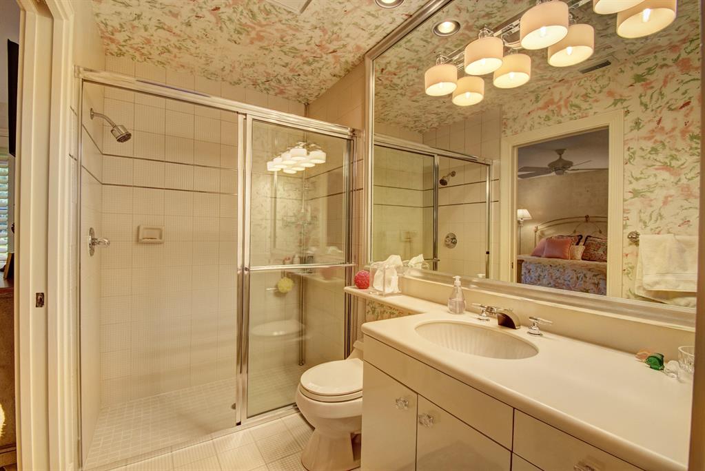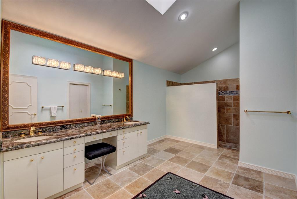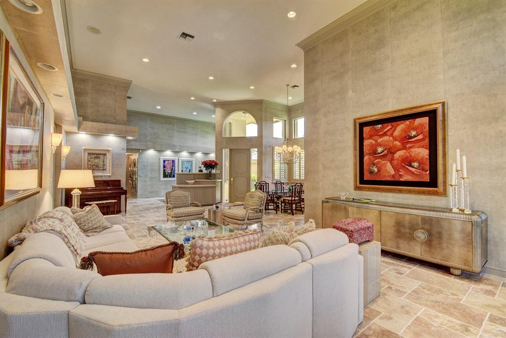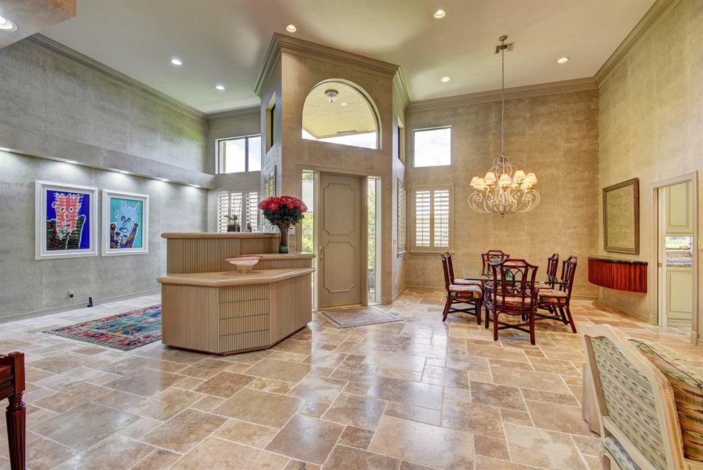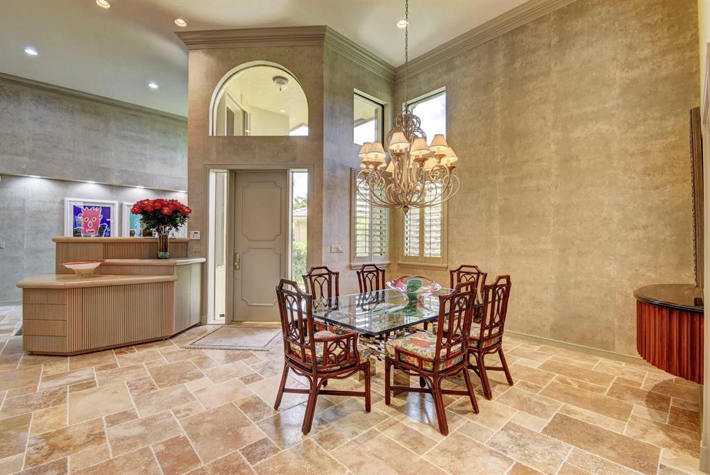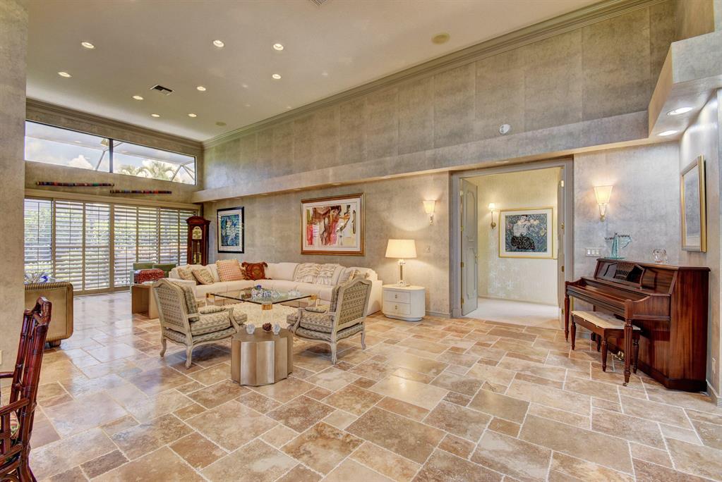 Great Space & Value! Located on a quiet cul-de-sac, this remodeled 1-story home of 3 bedrooms & 2 1/2 baths on a pie-shaped lot is open & spacious and larger than other one-story homes in the Cove. Elegant features include Jerusalem stone floors; volume ceilings & crown moldings; beautiful gourmet kitchen of ivory 42'' cabinets with roll-outs & self closing drawers,granite counters,onyx tile backsplash, stainless steel appliances & a charming breakfast nook;spacious master suite with custom-configured closets; remodeled Master Bath with Jerusalem stone & granite counter; upgraded powder room with Sherle Wagner sink; plantation shutters & wood blinds; LED high-hats; central vac system; newer washer & dryer;accordion hurricane shutters & a private screened patio. The roof is about 7 yrs old