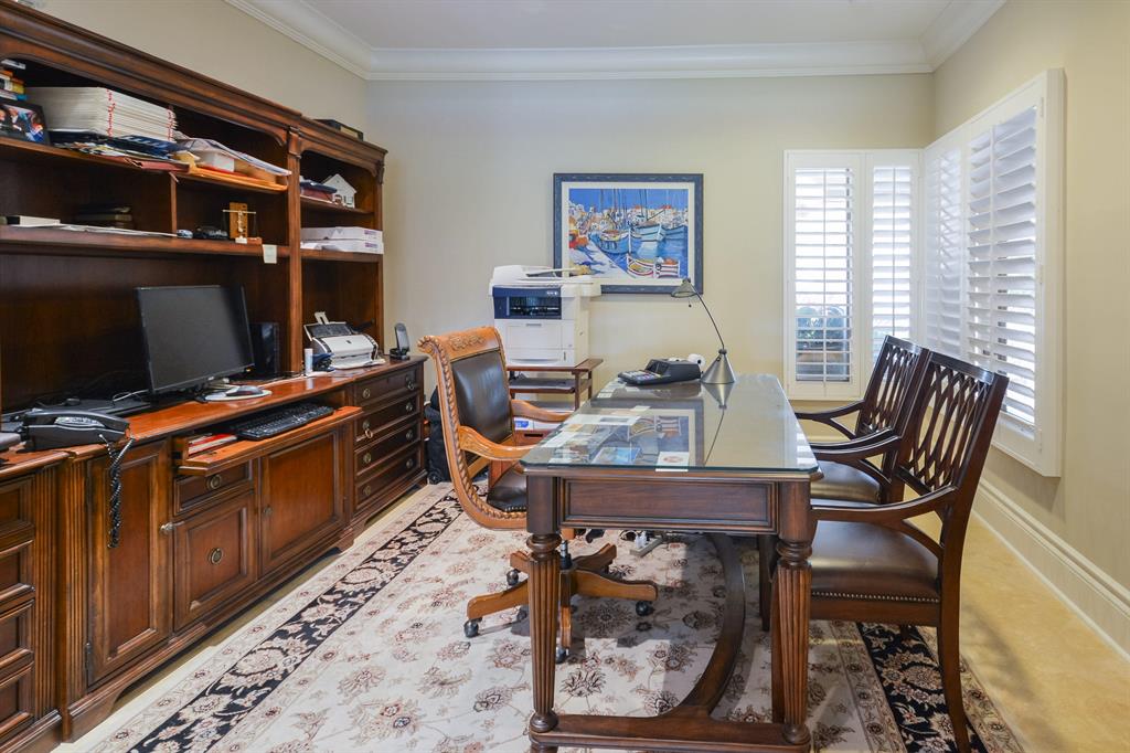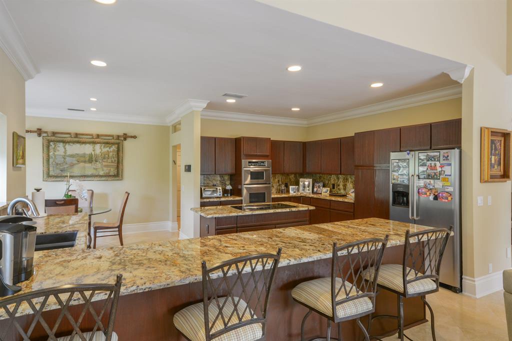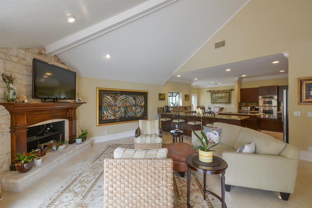 Beautiful one story home overlooking panoramic golf course views featuring formal living room with custom millwork and tray ceiling, Saturnia marble floors, kitchen with granite countertops and stainless steel appliances adjoining family room with coral stone fireplace and breakfast area. A spacious master suite with sitting area and his and her baths, 3 additional guest bedrooms and an office complete this interior. Outside, the large outdoor entertainment area includes pool and summer kitchen. The information herein is deemed reliable and subject to errors, omissions or changes without notice. All measurements are approximate.