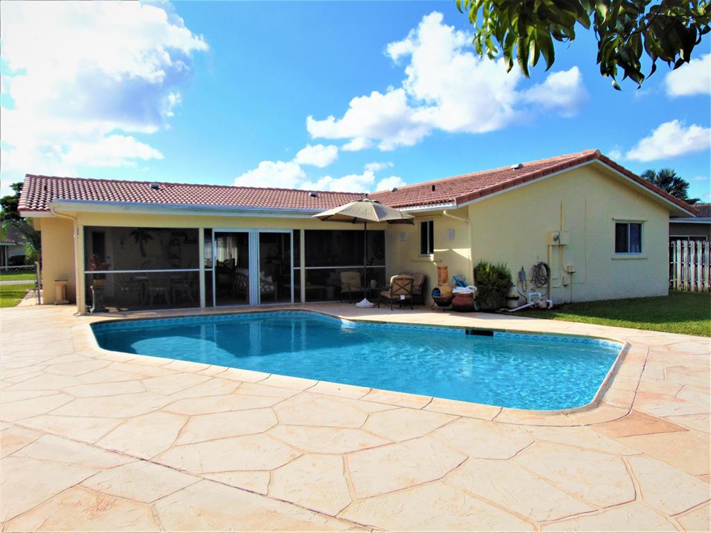 Here is the House that you have been searching for.. Amazing 3/2. 2 Car Garage Newer garage door and a Pool with Newer Diamond Brite.Completely remodeled Kitchen with real wood cabinets,beautiful granite throughout and movable island, brand new appiliances. Master Bath has been just completed with interior custom design mind and has not yet been used. From the moment you walk in the house you will see the pride of ownership and the quality of this Home from the very large Bedrooms, Brand new A/C, and not to mention the size of this yard.. Just imagine your weekends in the screened in Patio with Bamboo ceiling and Graniet top Bar with the TV right by your side (which conveys!).This is a move in ready home and you will see that it has been remodeled with the intent to last for years to