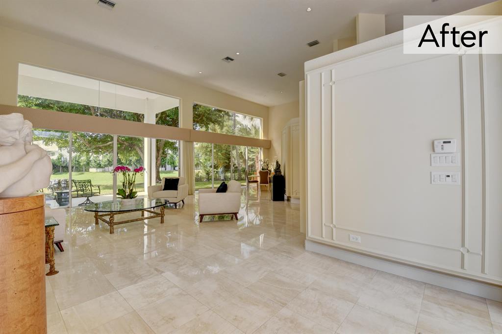 The following renovations have been done to the home Exterior trim & fascia painted; Driveway & courtyard power washed; Landscaping throughout; Living room divider wall painted; Curtains removed; Master bedroom painted and new carpet; Master bath cabinets painted; Kitchen virtually staged only; Family room built in wall unit painted; Guest room new carpet; Furniture staging has also been done throughout the home.