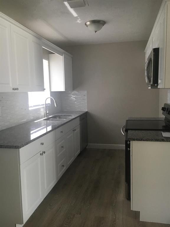 All new from top to bottom. Brand new roof both main roof and flat decks carport and rear patio. New AC, new baths, laminate plank flooring, fixtures. Brand new kitchen with granite countops and glass back splash. SS appliances (New top of the line Samsung counterdepth frig to be delivered and installed by 8/26).Located on rear side of cul de sac with oversized back yard and covered patio. Yard is big enough for a pool and then some. Few punch out items left to do which will be completed by 8/16. Turn key bring your pre qualified buyers this won't last long.