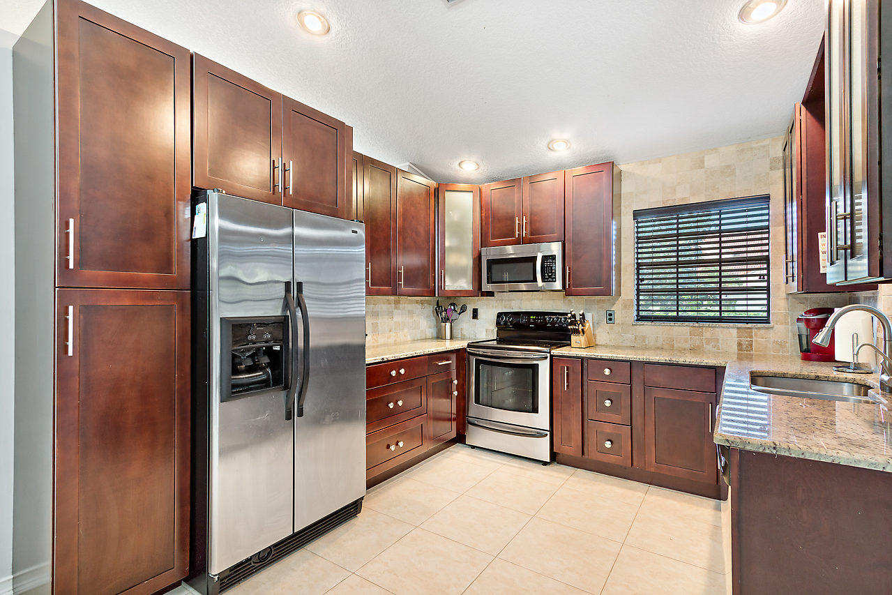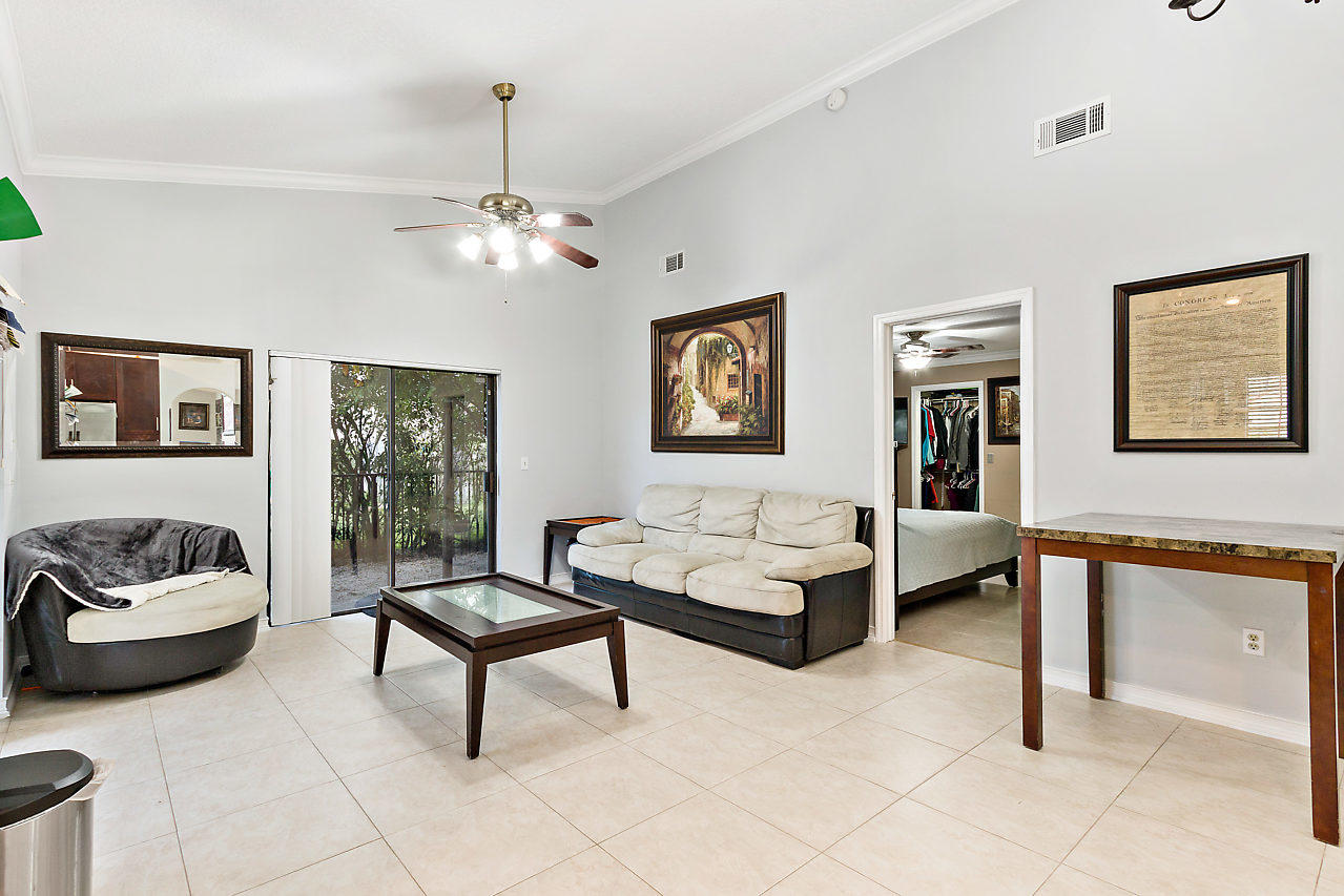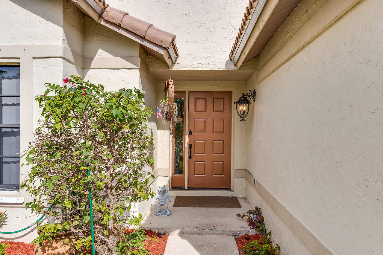 Adorable and cozy single family home. This great corner home features 3 bedrooms, 2 baths, 2 car garage. Covered patio, screened enclosure and fenced in. Beautiful neutral tile, crown molding throughout, freshly painted, the bathrooms and kitchen have been updated. The barrel roof was replaced in 2005, new air conditioner and more. This fantastic community offers, pool, tennis court, playground close proximity to shopping centers, restaurants, highways, and excellent school district. A must see!!!