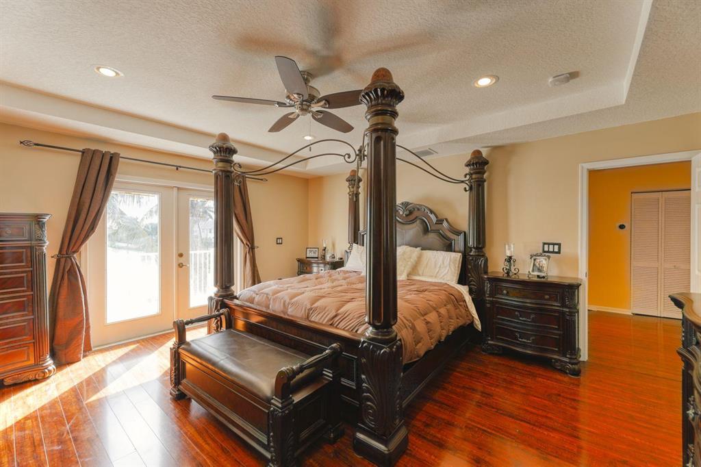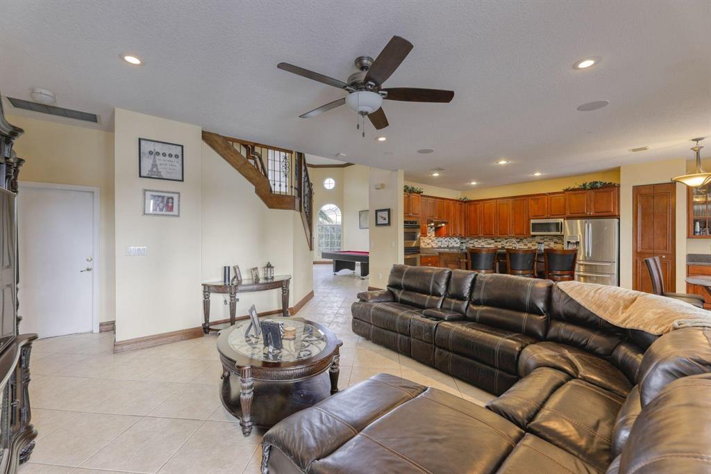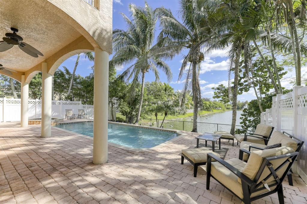 Custom designed 2-story home with expansive lake views. Home boasts 4 bedroom, 3 baths, large loft, first floor bedroom with full bath, tiled and wood floors, beautiful wood stained wrought iron staircase, crown molding, gourmet kitchen w/ cherry cabinets, SS appliances and granite countertops. 2nd floor master bedroom w/large walk-in closet, spacious bath including dbl sinks, garden tub, separate shower and private balcony overlooking lake and pool. 2nd floor has wood floors, two additional bedrooms, loft, and large bathroom with dbl sinks. Home features the Smart Home technology which operates the salt water pool, spa, exterior lighting, thermostat and alarm. Home is positioned at the end of the lake giving you spectacular full length views. Yard is fenced and in a gated community.