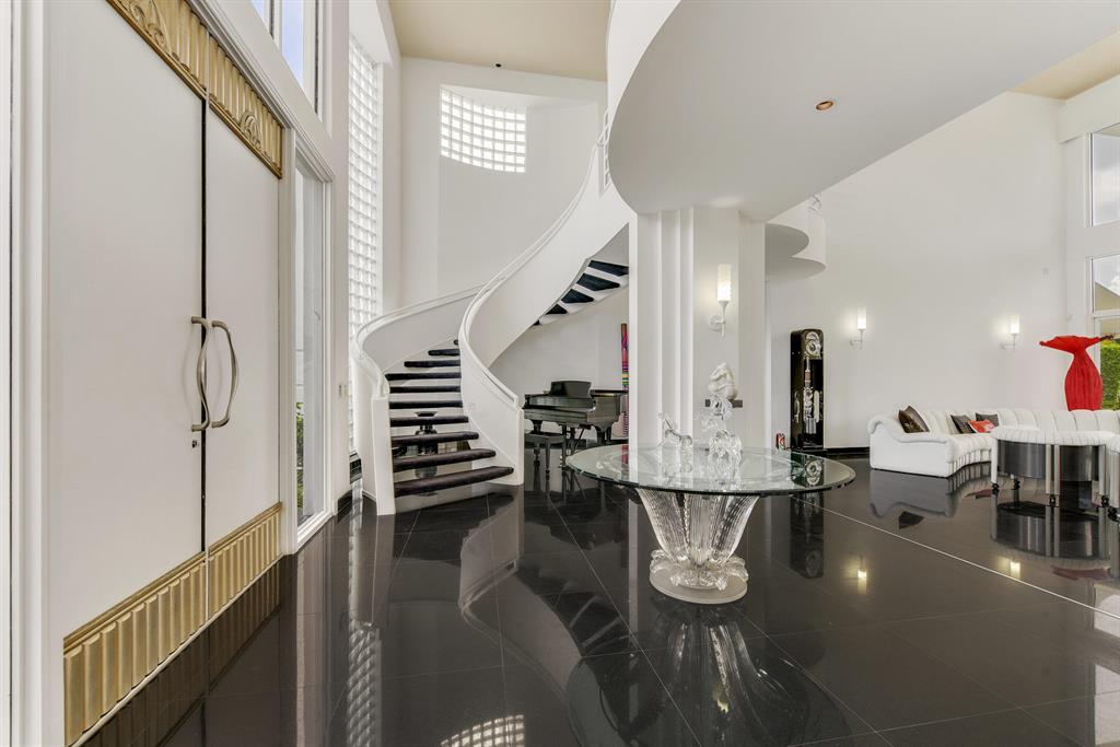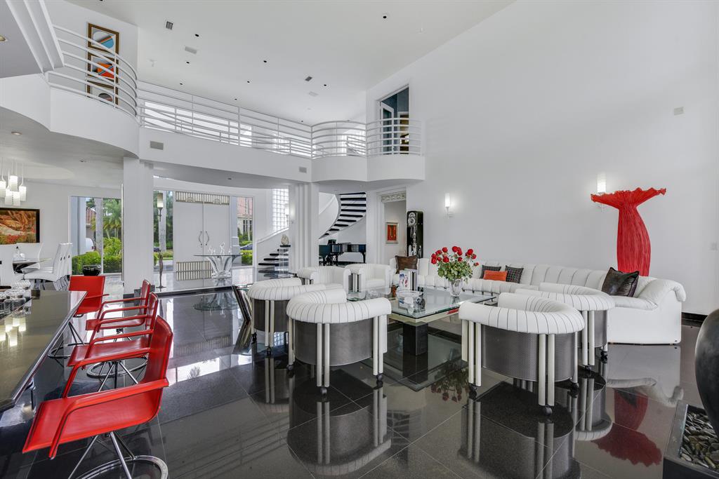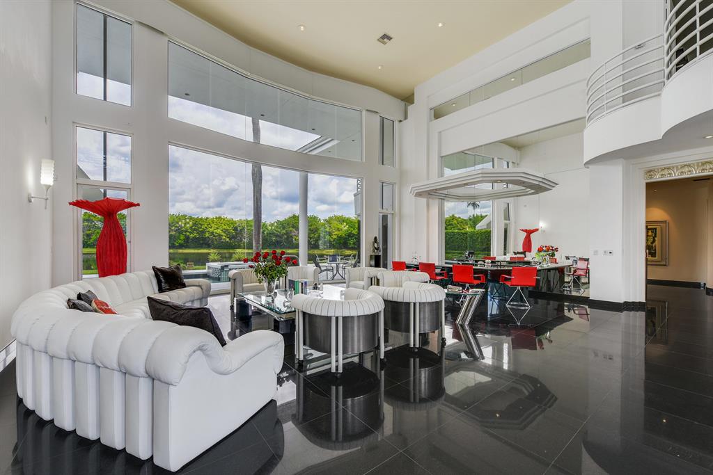 This timeless contemporary has sensational lake and sunset views. A circular driveway services a three plus car garage and main entry, while a two story entry foyer, with sweeping staircase, transcends to a granite accented great room, dining area, and entertainment bar, with direct views of the open pool, patio and lake view. An exceptionally spacious first floor master bedroom suite with dual baths and closets opens to the pool patio with lake views. An updated contemporary kitchen, breakfast area, full family/media area, elevator, office with full bath and an additional bedroom suite complete the first floor. The second floor, serviced by staircase or elevator, features a media room, billiards/game room and four additional bedroom suites and two balconies. Membership is required.