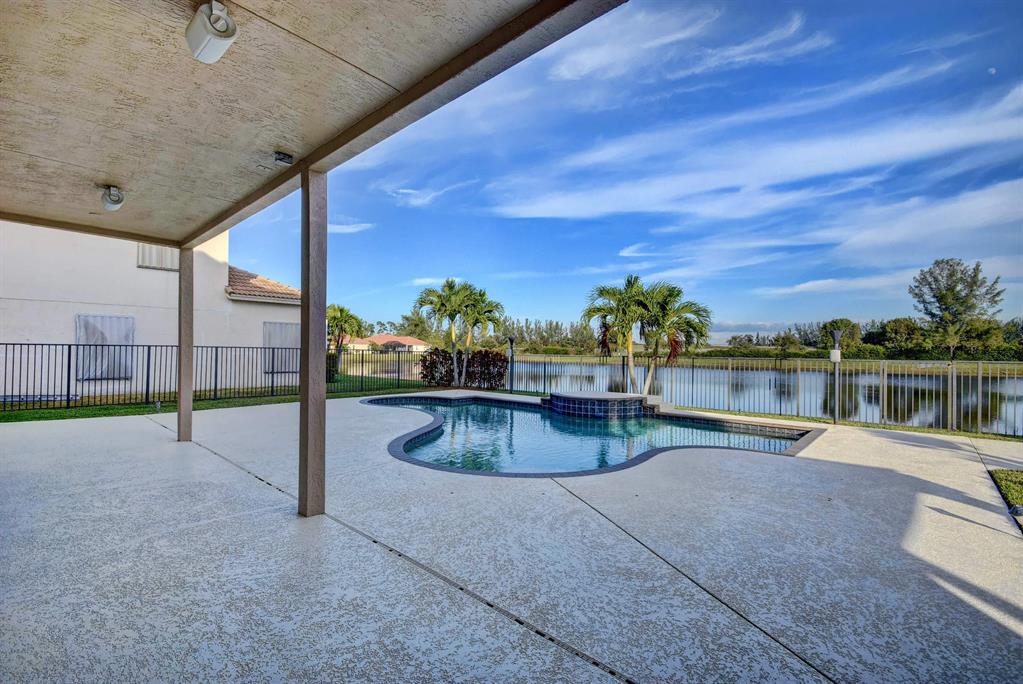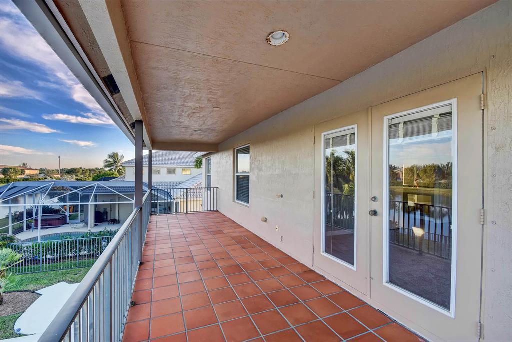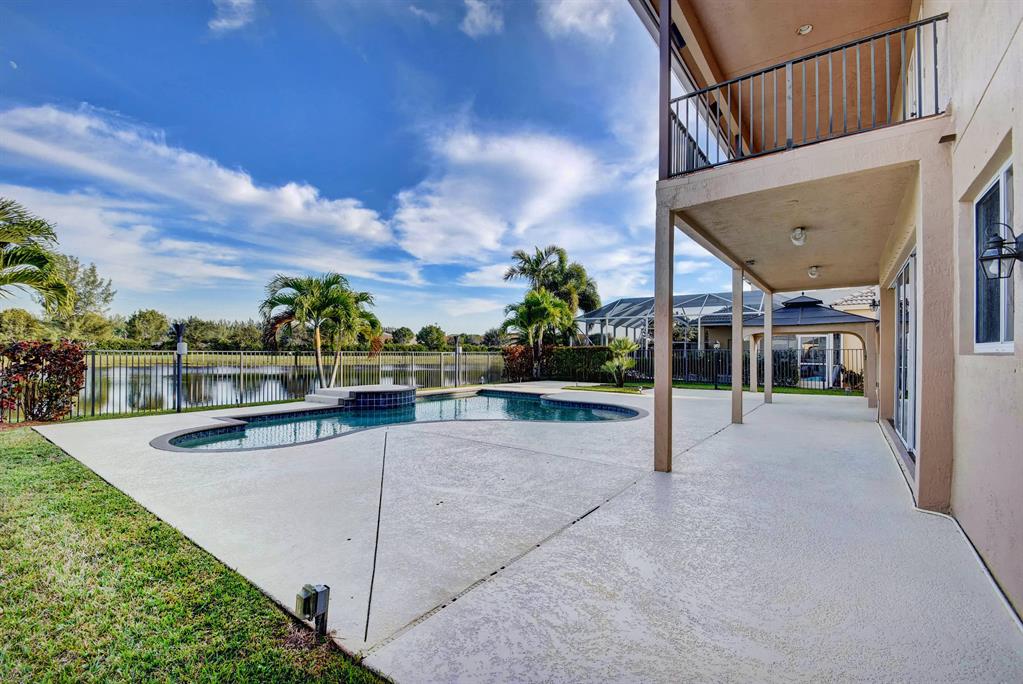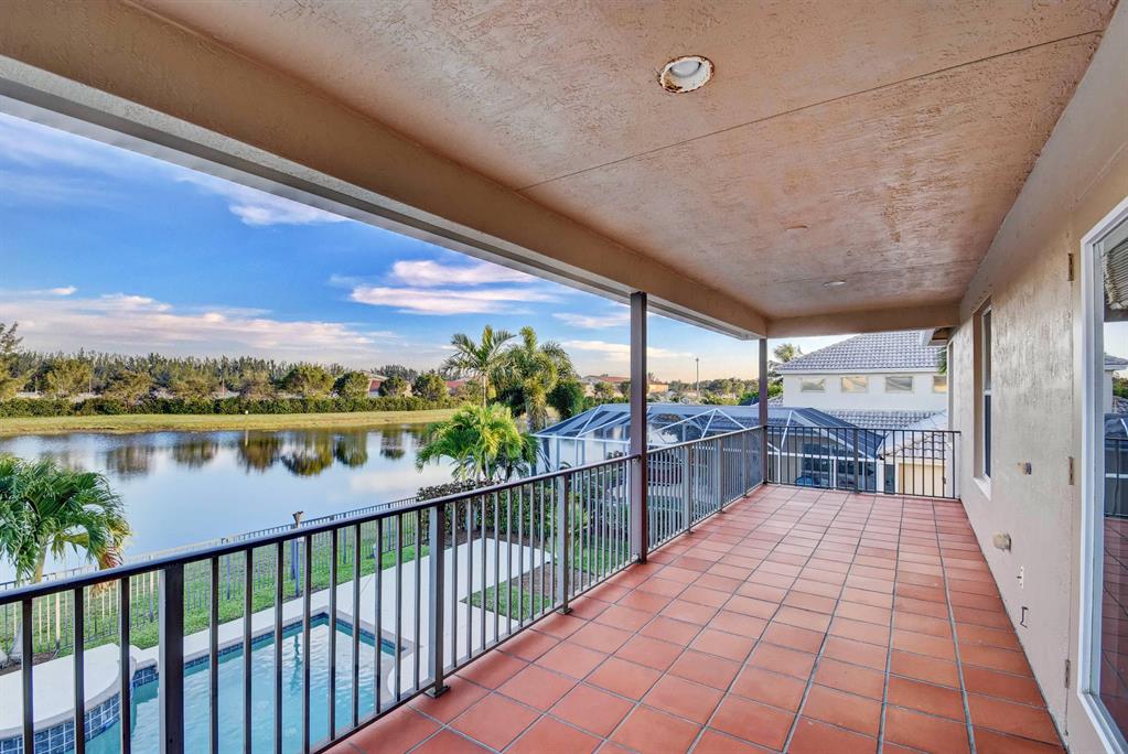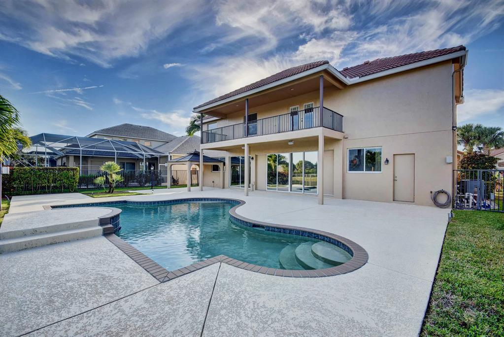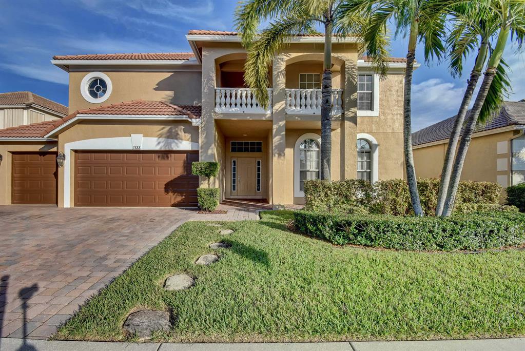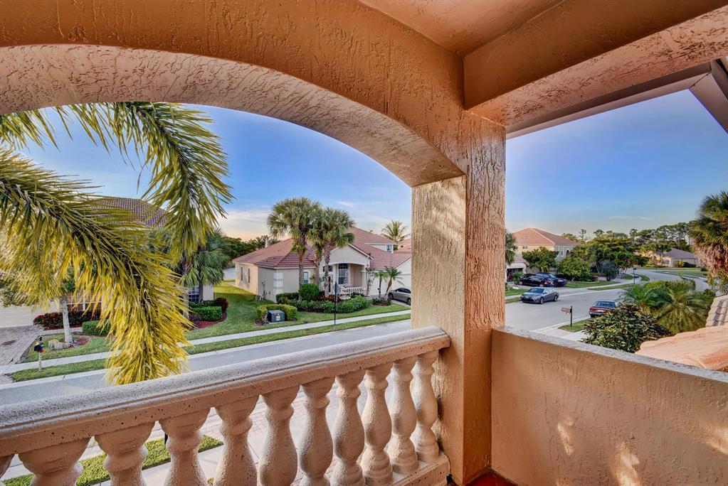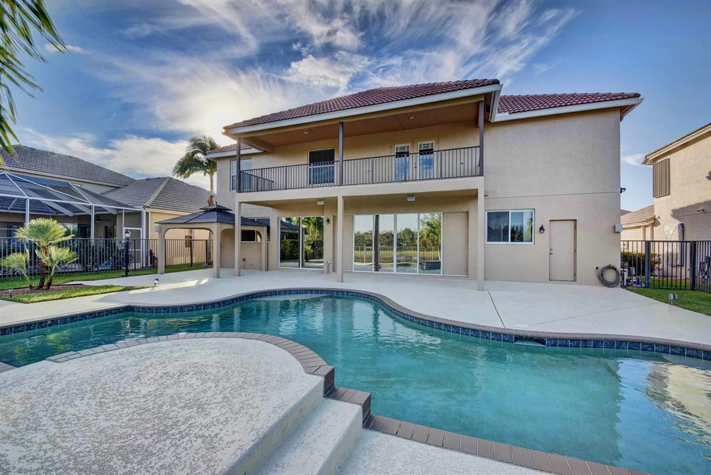 BACK ON MARKET AND PRICED TO SELL!! Gorgeous custom home where pride of ownership shows. Only model of its kind in the entire neighborhood. Two balconies and spacious bonus room. Open concept. New carpet, refinished floors, freshly painted interior, exterior, and patio, new landscaping, outdoor surround sound, tinted east windows, granite countertops, cherry wood cabinets, and stainless steel appliances. Gas hookup on stove, dryer, water, pool heater, and even pool tiki torches! This one has it all! Minutes to Publix, Turnpike, 95, PBIA, CityPlace, and new pro ballpark!