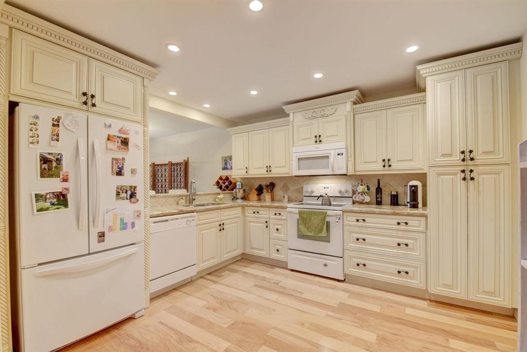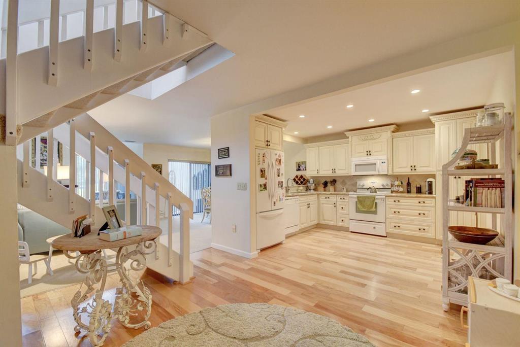 Fall in love with this lakefront corner townhome, featuring extraordinary space and style. Architectural details include shiplap feature walls, stunning hardwood flooring, and luxe fixtures and finishes throughout. Gleaming showplace kitchen features sophisticated, contemporary cabinetry, granite counters, tile backsplash, and oversized pass through to seated bar. Gorgeous great room features dramatic, two-story ceilings and windows and contemporary fireplace. Luxurious owner's suite is a restful retreat, with a seating area/home office, patio space, and spectacular spa-like bath featuring double marble vanity and separate shower room with Roman tub. Charming lanai is a sheltered spot for outdoor seating, dining, and entertaining with a view of the meticulously kept landscape and lake.