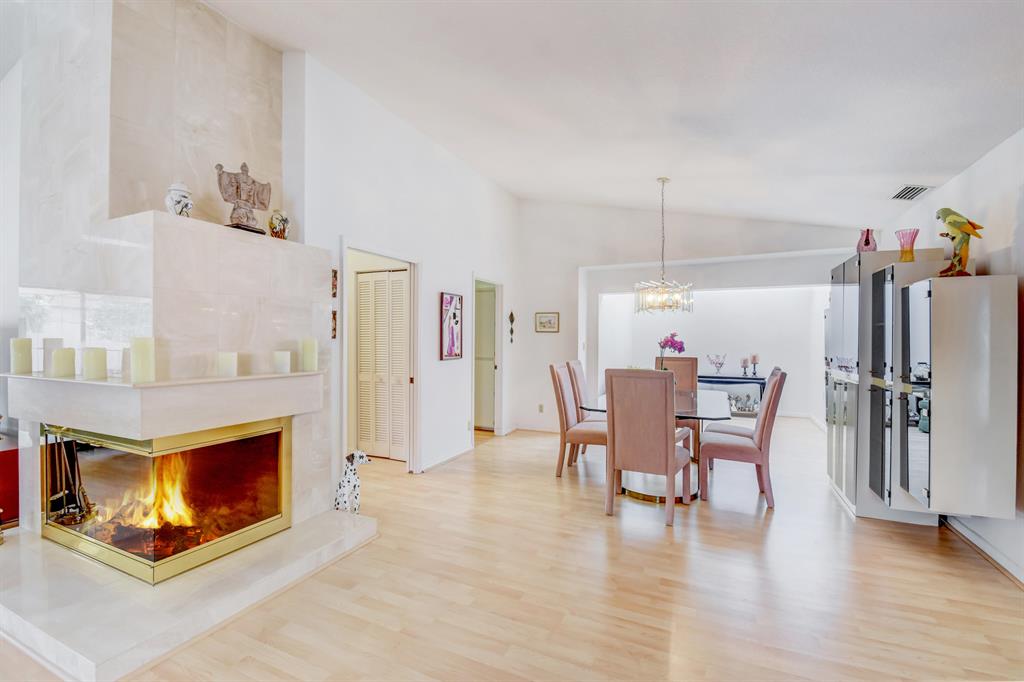 Lovely 3 bed/2 bath home that has been well maintained by the original owner in Pradera. Huge open living & family room w/high vaulted ceilings, formal dining, plus eat in kitchen & split floor plan. Atrium has been enclosed & is a great bonus area featuring 2 sky lights. Walk in & see your beautiful marble fireplace (opens to see from 2 sides). Perfect for entertaining. Laminate flooring throughout the entire home makes everything flow smoothly together. Knockdown ceilings (no popcorn). Kitchen has new stainless appliances. Spacious master bath has double sink vanity, tub & separate shower. Huge walk in closet plus tons of extra closets and storage space. Inside laundry room. Accordion shutters. S-Tile roof from 2006.