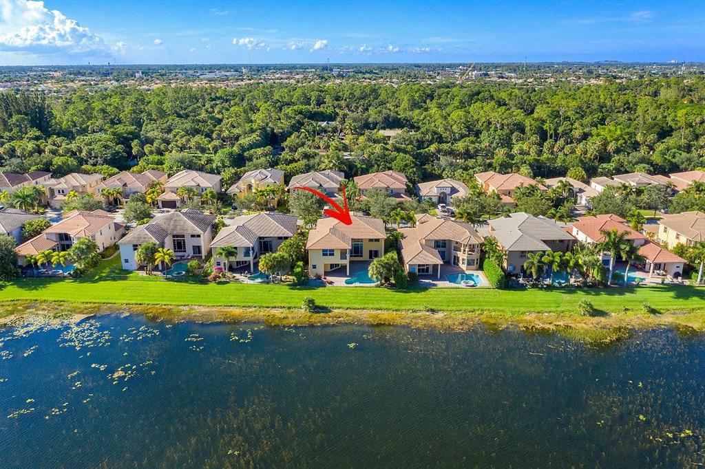 Rarely available Toll Brothers' Ternbridge model built on a beautiful, premium, long lakefront lot with circular driveway and 3-car garage. If you enjoy a lot of livable space, this home is ready for you. Estate features 5 bedrooms plus den & loft area, 5 full bathrooms totaling 4,639 square feet under air (2380 down, 2259 up). The foyer and living room areas have dramatic vaulted ceilings with elegant chandelier above. Family room and kitchen highlight pool and extensive lake views. An exquisite gourmet kitchen with high end stainless GE profile appliances is chef ready. A breakfast nook off the kitchen opens to the formal dining room and second set of stairs to the upper level. The first level bedroom suite is perfect for stay over guests, and there is an office and two full baths