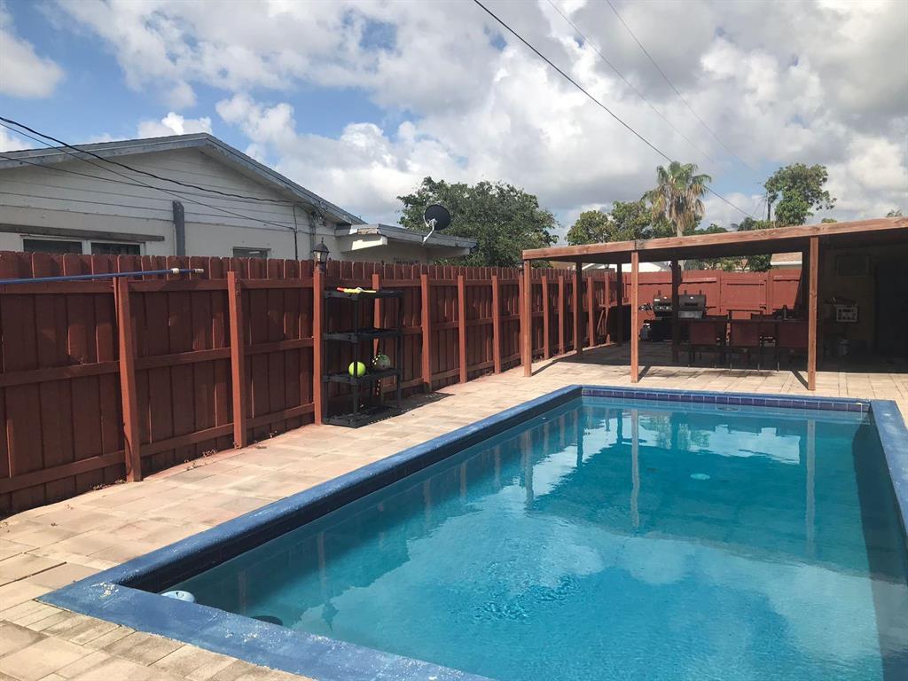This is the perfect house! Owner remodeled most part/ 4-br 2-bath pool home. Includes large bonus room where can be used for working area. Wonderful space in the living room with a large brick fireplace. This house has a great area for the Kitchen, breakfast area, and dining all together. French doors open on to the pool deck, New fenced yard on large corner lot. 3 br, 2 baths are split from 4th br and bonus room with private entrance. Master br has shower bath, walk-in closet, sliding doors to pool deck area. Enclosed porch good for home office. A Must see! Great for investment as well!