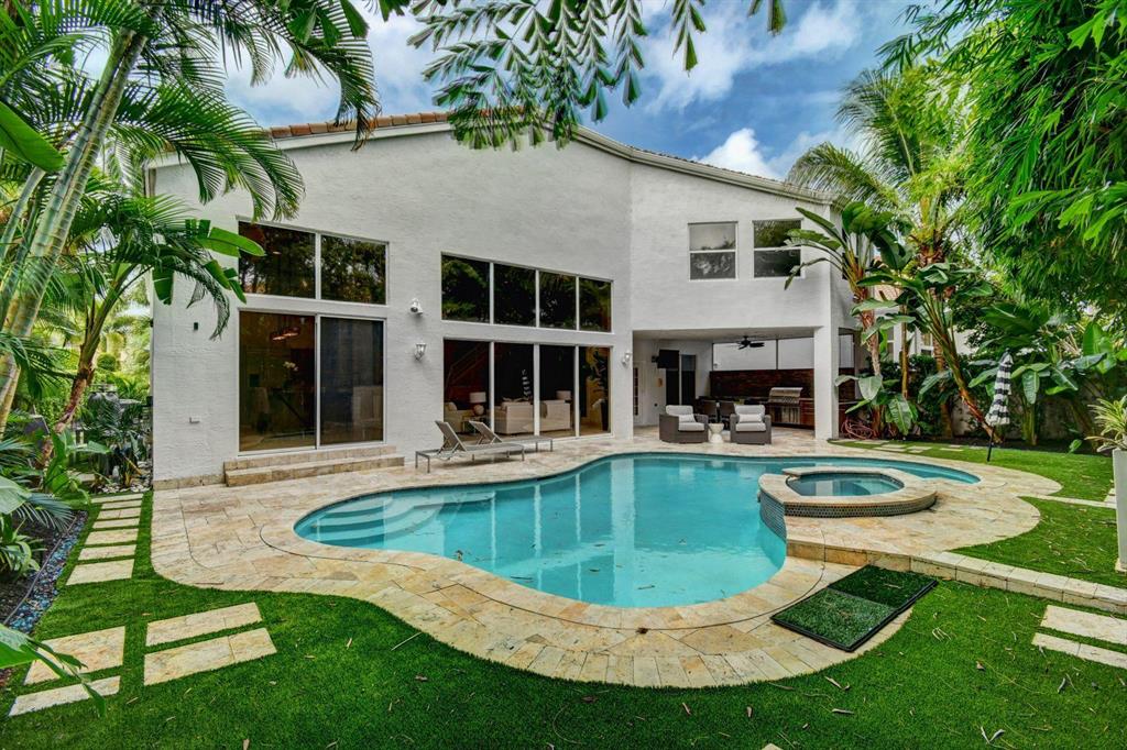 Renovated to perfection in Woodfield Country Club! This elegant home boasts volume ceilings, abundant light throughout, and spacious open floor plan.Featuring high end wood finishes throughout and a spectacular gourmet kitchen with gas range, large island and stone counter tops. Office/den and guest bedroom with cabana bath are conveniently located on the first floor. Loft and additional two bedrooms and bathroom upstairs, along with master suite. The master suite contains two walk-in closets and a huge shower and vanity. Private outdoor living area with summer kitchen, travertine patio and salt water pool.Woodfield Country Club is an exclusive, luxury community centrally located with resort style amenities: golf, tennis, clubhouse, fitness center, pool, splash park, spa and restaurants.