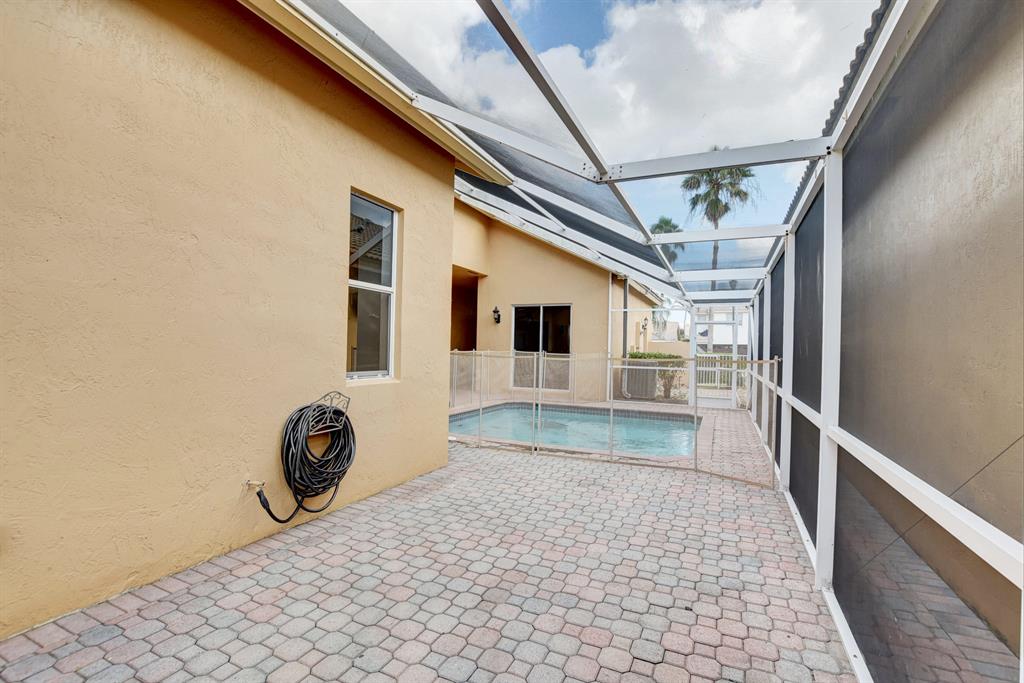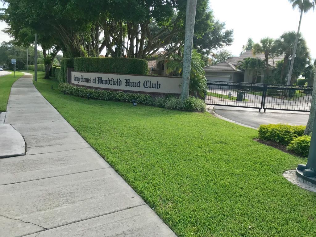 WELL KEPT ONE-STORY COURTYARD HOME LOCATED IN CENTRAL BOCA RATON IS READY TO MOVE IN. LOCATED IN A GATED COMMUNITY IN THE DESIRABLE CARRIAGE HOMES OF WOODFIELD HUNT CLUB WITH NO MANDATORY MEMBERHIP FEES REQUIRED. LARGE BACKYARD WITH A HUGE MASTER BEDROOM OVERLOOKING THE POOL. GUEST HOUSE IS SUITABLE FOR AN OFFICE AND OVERLOOKS THE POOL.