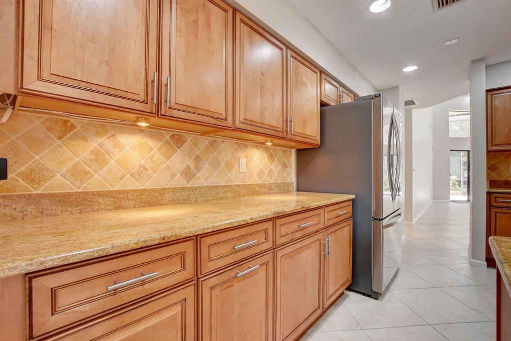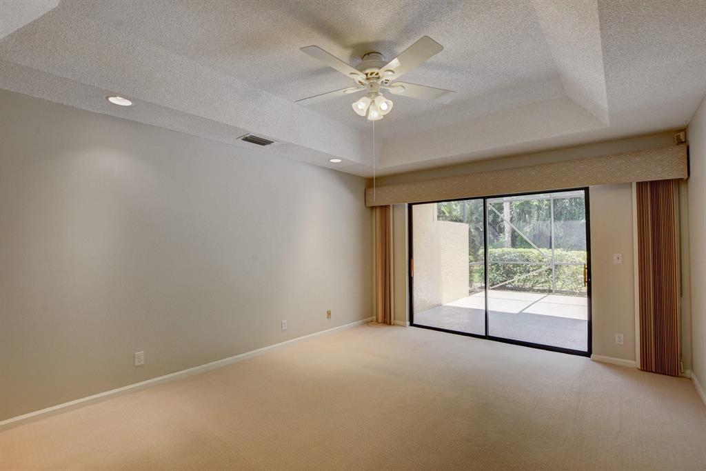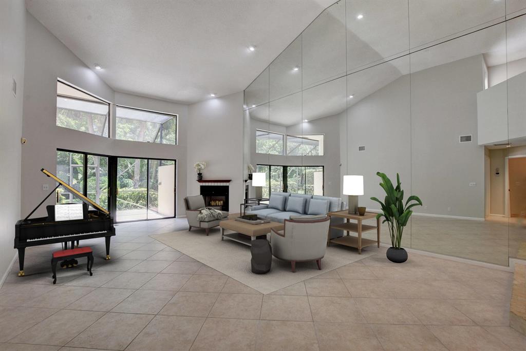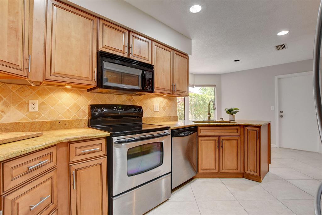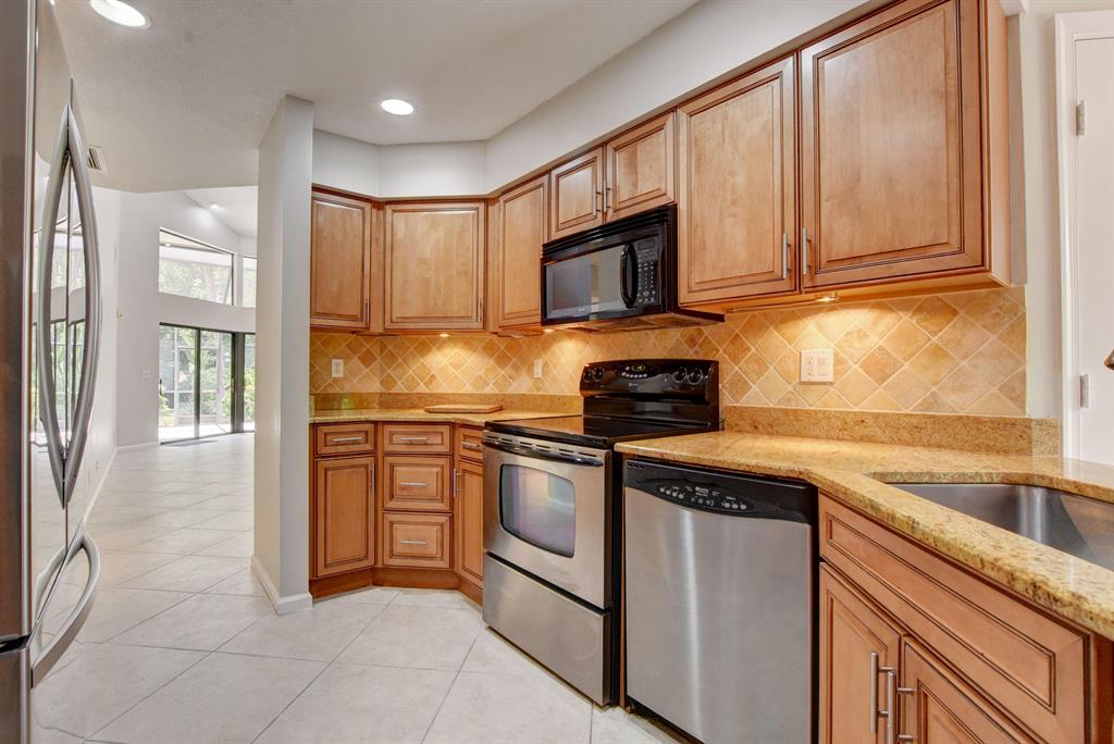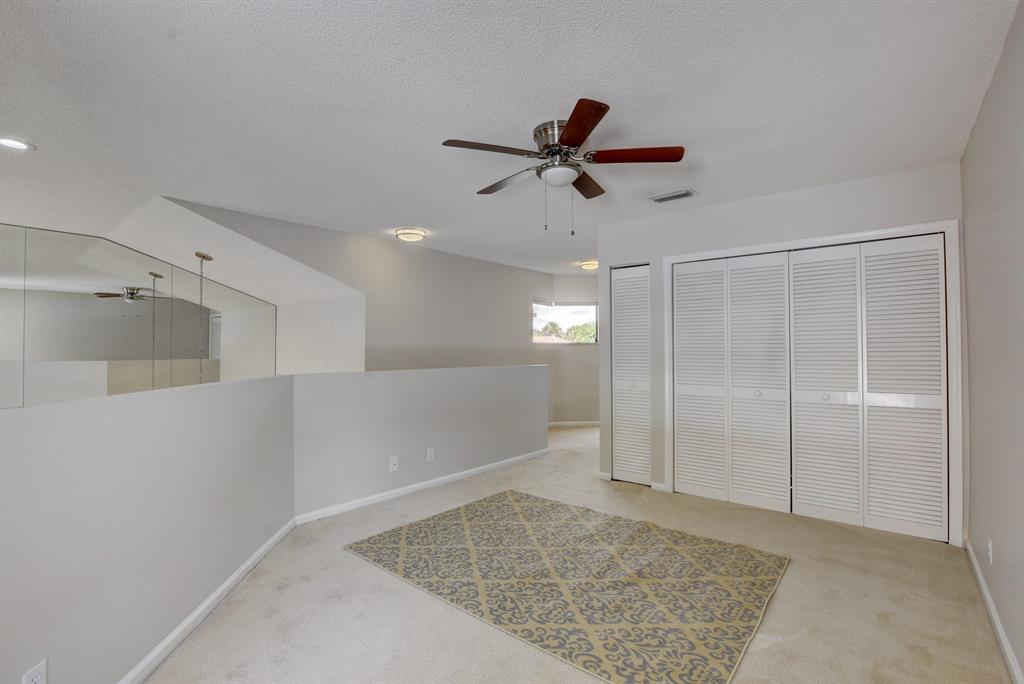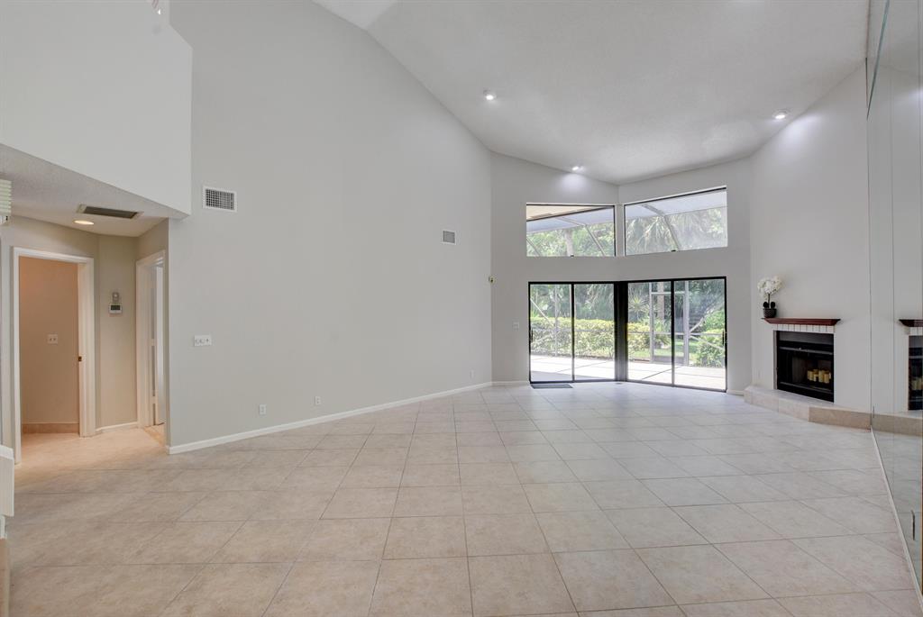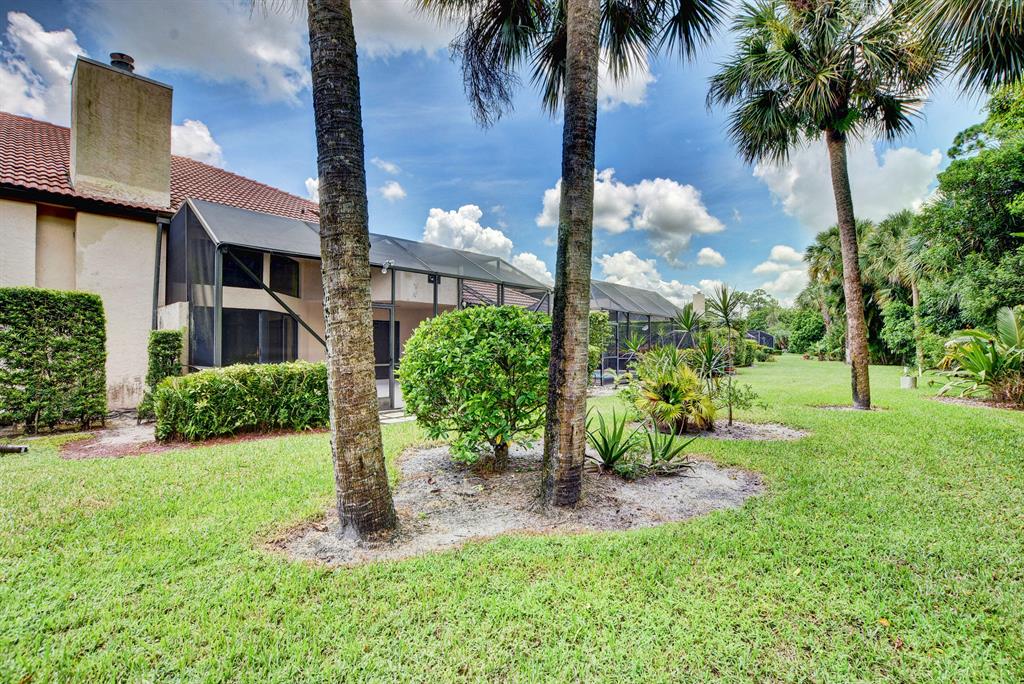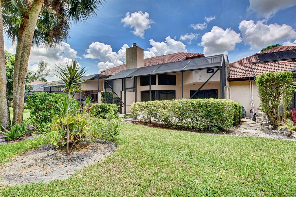 Breakers West townhome offers a stunning private retreat with a downstairs master, updated ensuite and outfitted closets. The kitchen has been completely remodeled with solid wood cabinetry, granite counters and stainless steel appliances. This home feels extra spacious with cathedral ceilings, skylights, transom windows and open loft area. The private screened patio is surrounded by lush tropical greenery and just beyond is the golf course. A real fireplace is a nice bonus feature. The HOA includes landscaping, roof & exterior maintenance & building insurance, manned security, alarm monitoring, basic cable and NO MANDATORY CLUB MEMBERSHIP !!