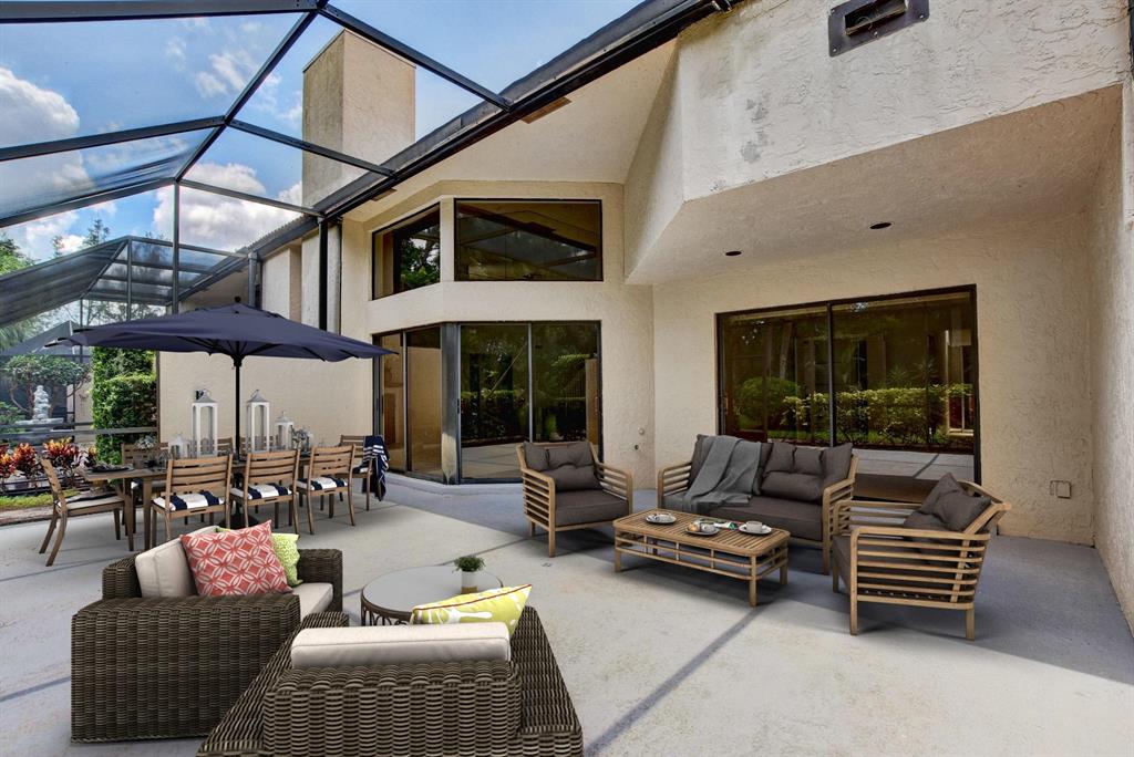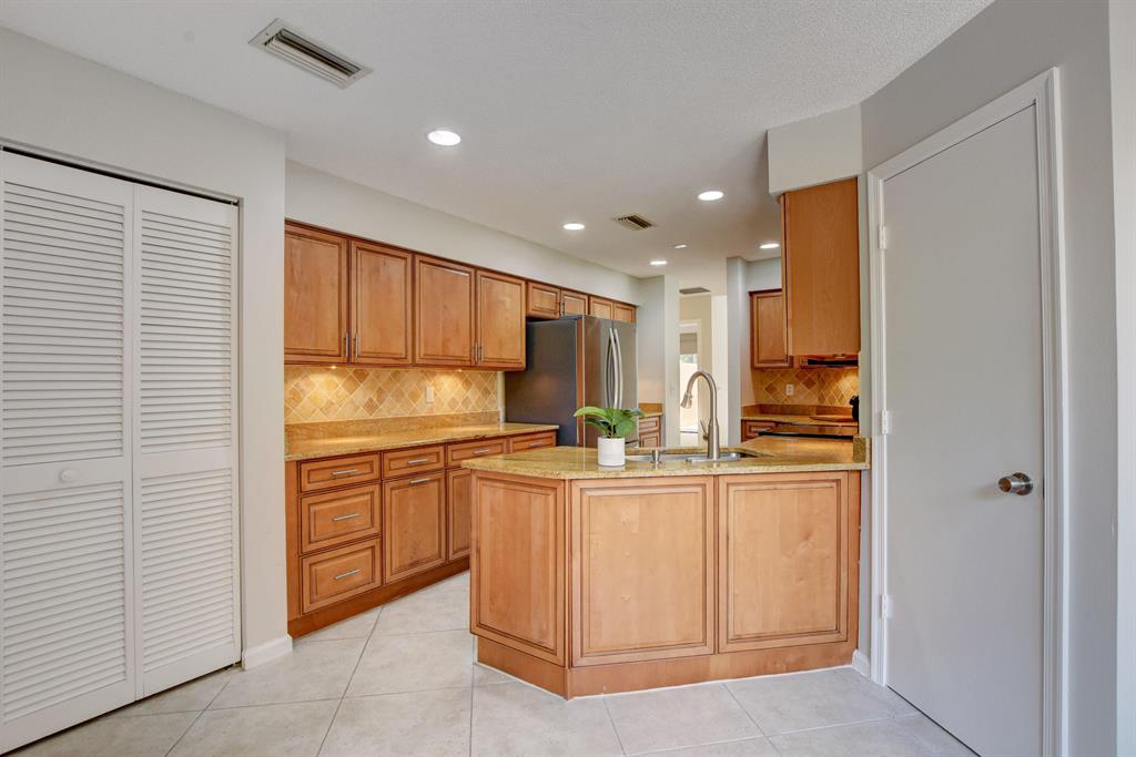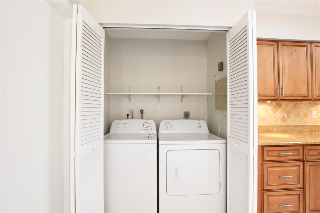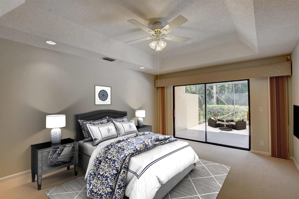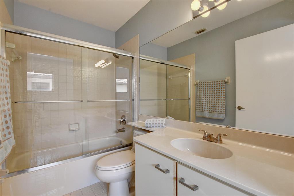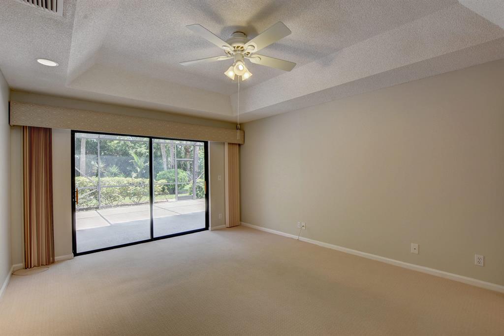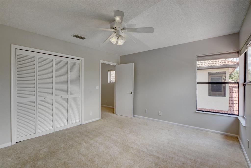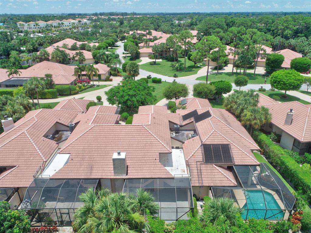 Breakers West townhome offers a stunning private retreat with a downstairs master, updated ensuite and outfitted closets. The kitchen has been completely remodeled with solid wood cabinetry, granite counters and stainless steel appliances. This home feels extra spacious with cathedral ceilings, skylights, transom windows and open loft area. The private screened patio is surrounded by lush tropical greenery and just beyond is the golf course. A real fireplace is a nice bonus feature. The HOA includes landscaping, roof & exterior maintenance & building insurance, manned security, alarm monitoring, basic cable and NO MANDATORY CLUB MEMBERSHIP !!