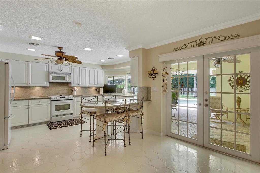 NO MEMBERSHIP FEES- low HOA! Enjoy this one story home on a premium park lot in the centrally located, gated community of Boca Bath & Tennis. No worries during Hurricane season with all impact windows, newer roof and a/c units, and natural gas hookups to pool heater, water heater, dryer & outdoor grill. This is outdoor living at its finest - relax in your private backyard oasis with a large covered patio area & outdoor kitchen, pool and playhouse (with electric power!) for the kids. Bright white kitchen with pass thru to outdoor bar opens to the family room. Split bedroom layout with Master Bedroom and 4th bedroom/office on one side and 2 bedrooms with one bath on the other. Oversized garage with beautiful epoxy finish and an abundance of additional storage make this an easy move!