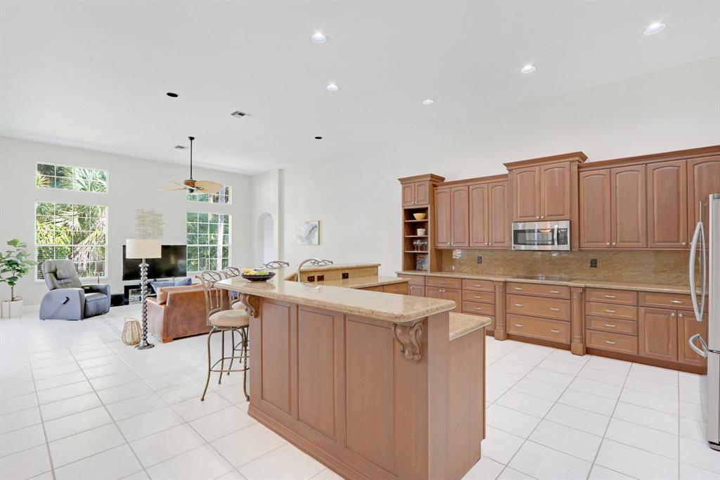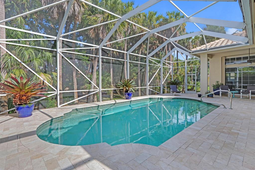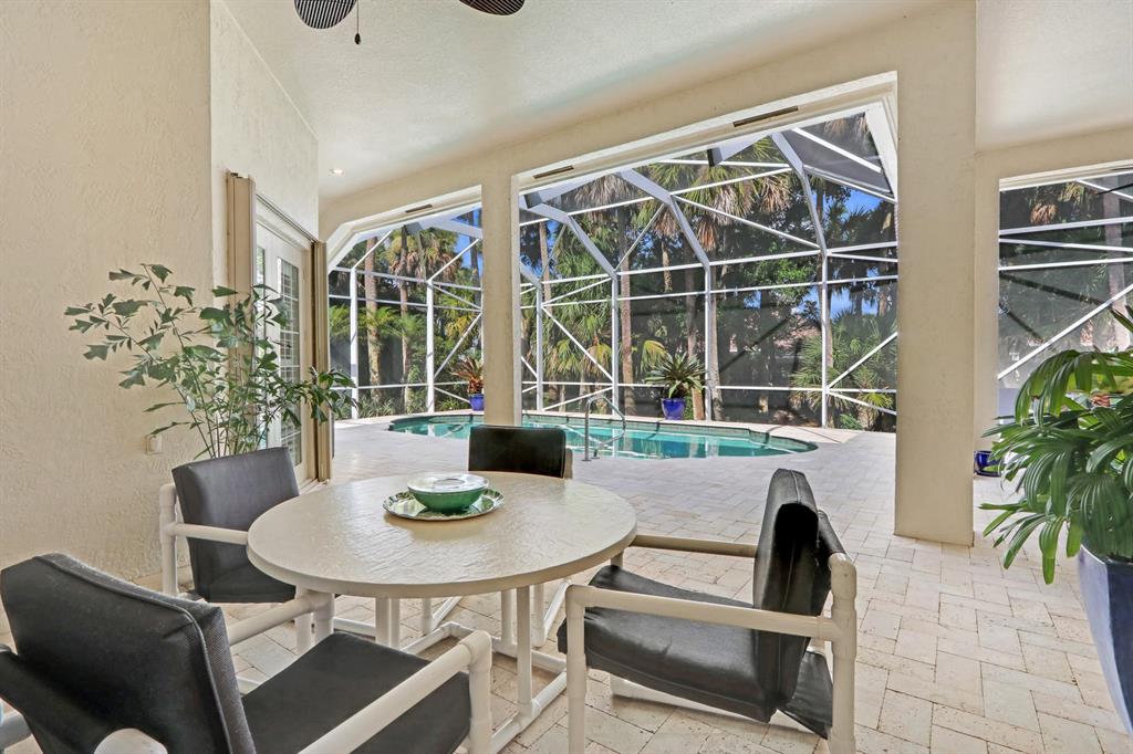 Gorgeous and immaculate five-bedroom, four-bath, three-car garage stunner situated on a beautifully landscaped half-acre lot. Centrally located near shopping, restaurants and A-rated schools. The lush yard is framed with mature trees and a tall, manicured privacy hedge. Large, exterior front double-door entryway with stone columns leads into a bright and gorgeous living room with soaring ceilings and large windows overlooking the screened, heated pool and patio. Giant, newly renovated kitchen has an abundance of 42-inch walnut cabinets, granite countertops, breakfast bar, double wall ovens and stainless steel appliances. Kitchen and family room share an expansive open floor plan, the latter spilling out to the pool and patio through sliding glass doors.