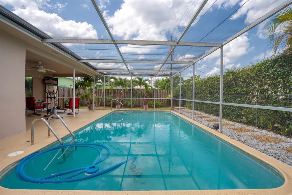 A treasure that is must see!!! A beautiful 1971 traditional CBS home 3/2/1 with pool and liana. Both bathrooms have been remodeled with new tile and cabinetry. All hard flooring throughout the floor plan (NO CARPET),lovely neutral tile and laminate wood floor. New light fixtures in living room and kitchen. Water heater was installed in 2015. Kitchen offers eating area, pantry and pass through window to liana. All kitchen appliance convey. The pool and yard is fenced, with mature landscaping, for privacy. Pool was refinished with diamond bright, in 2014. Centralize shopping location to both Broward Mall and Sawgrass Mils Mall. Start living the South Florida life style!!!