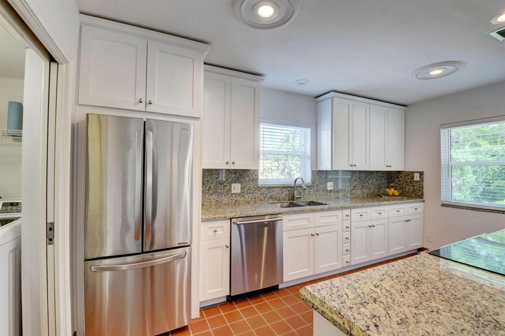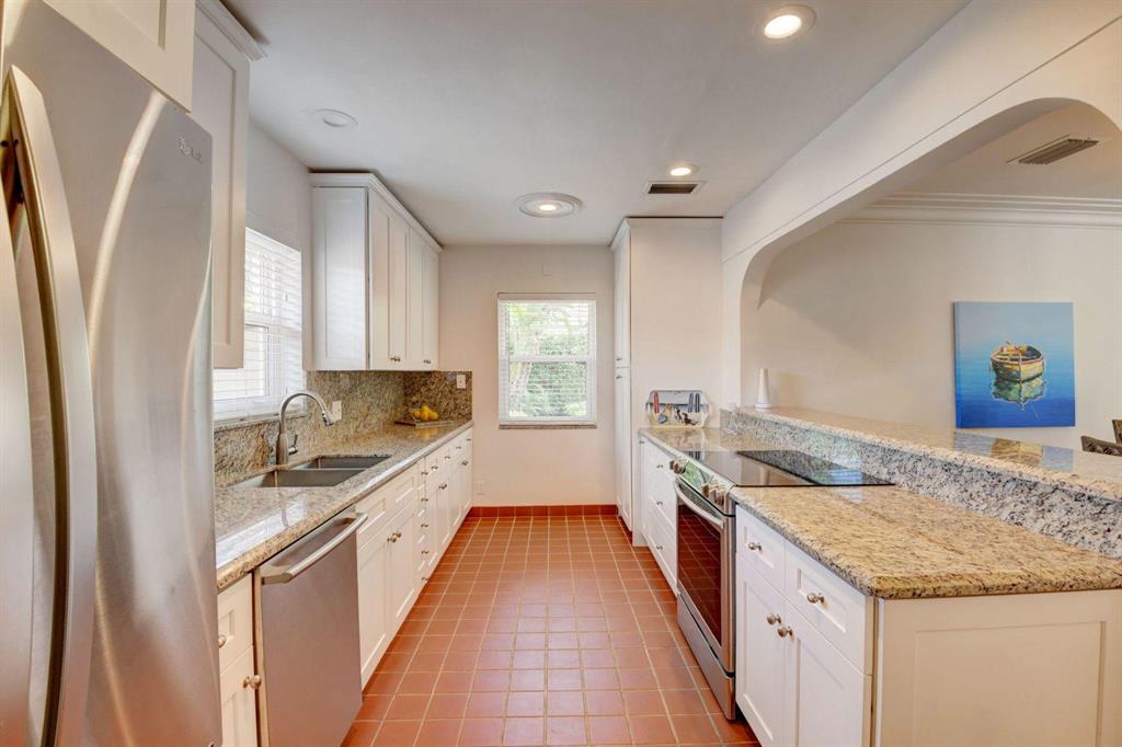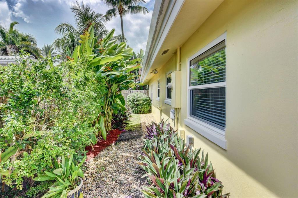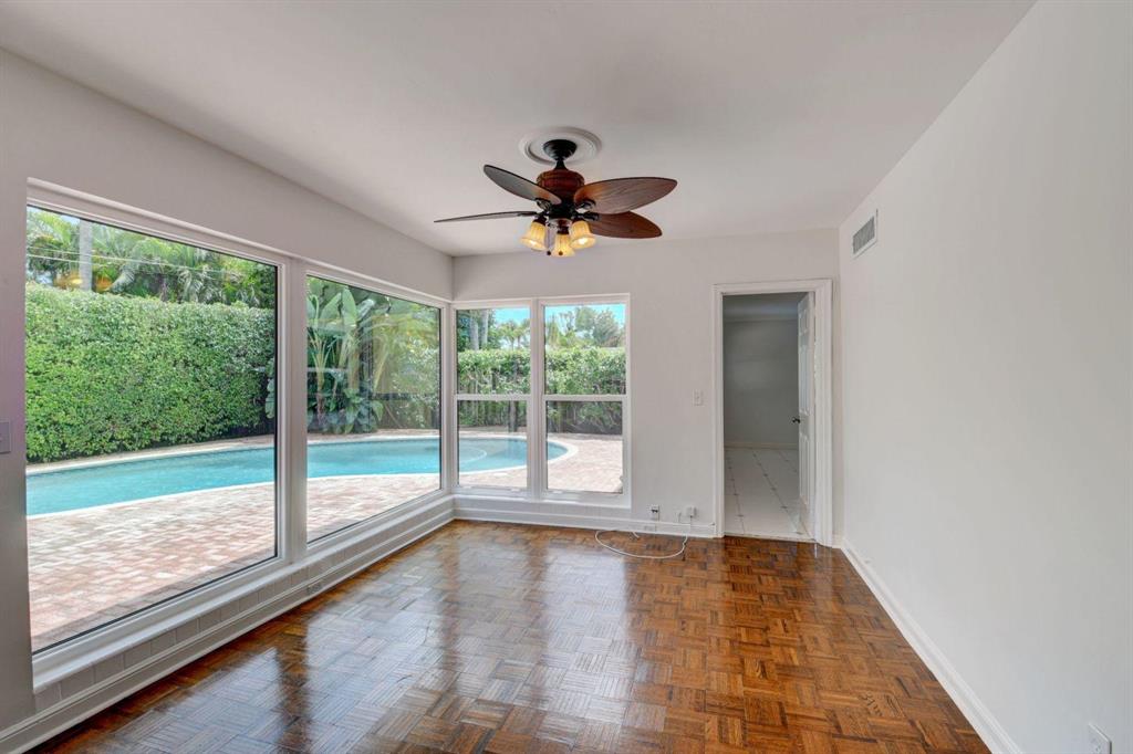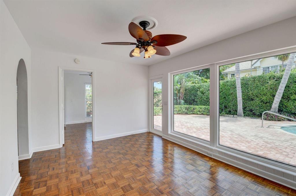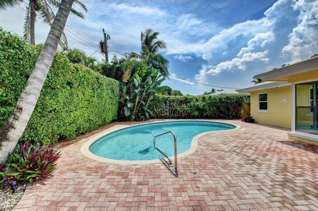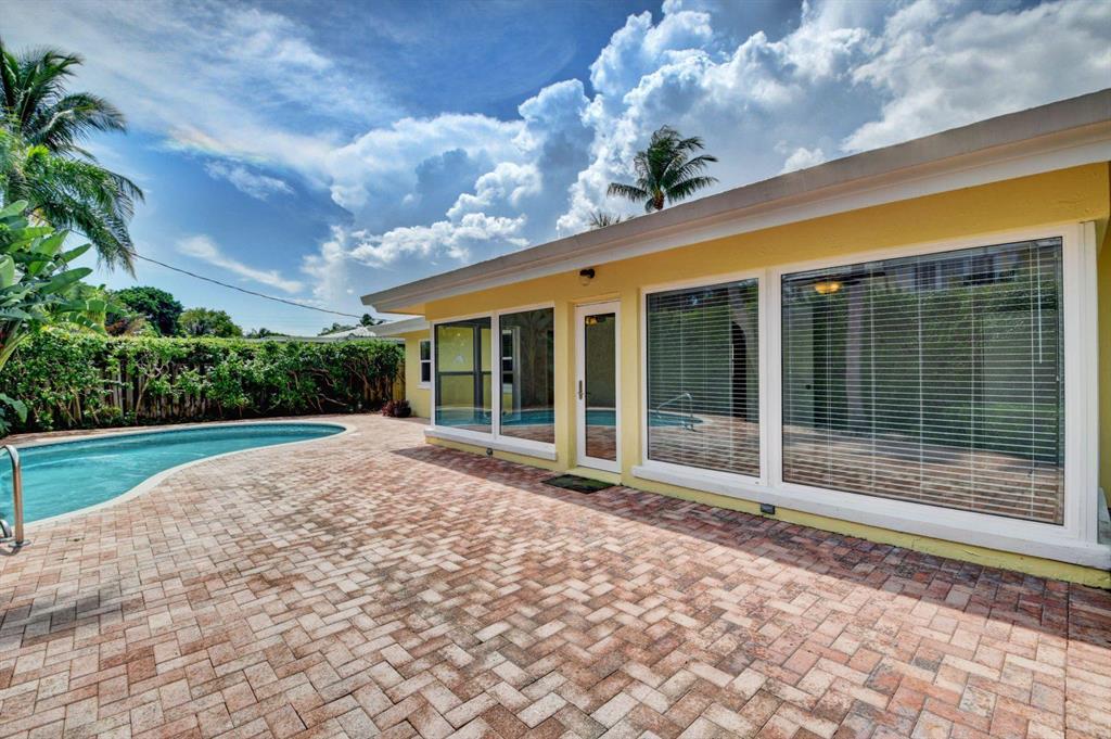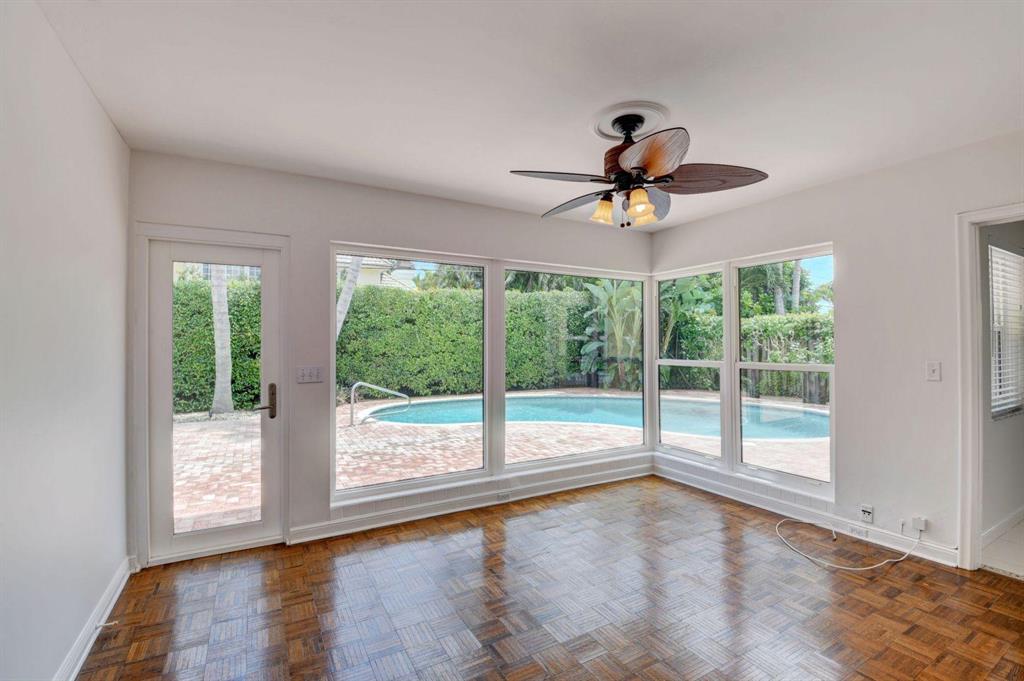 Fall in love with this sunny and inviting mid-century modern 2BR/3BA plus office pool home just a few blocks from the ocean. Located in a lush barrier island enclave between the Intracoastal and the Atlantic, the home is an easy walk to the beach, golf course, Red Reef Park, Gumbo Limbo Nature Preserve and a host of fun shops and restaurants. Natural light fills the open floor plan, and walls of windows look out to its lovely terrace, pool and manicured landscape. Charming period details like classic parquet floors, vintage tile and interior arches have been preserved to blend with updates that include impact windows and doors and a sleek kitchen with stainless appliances and granite counter tops. Other notable upgrades include custom closets and a newly refinished Diamond Brite pool.
