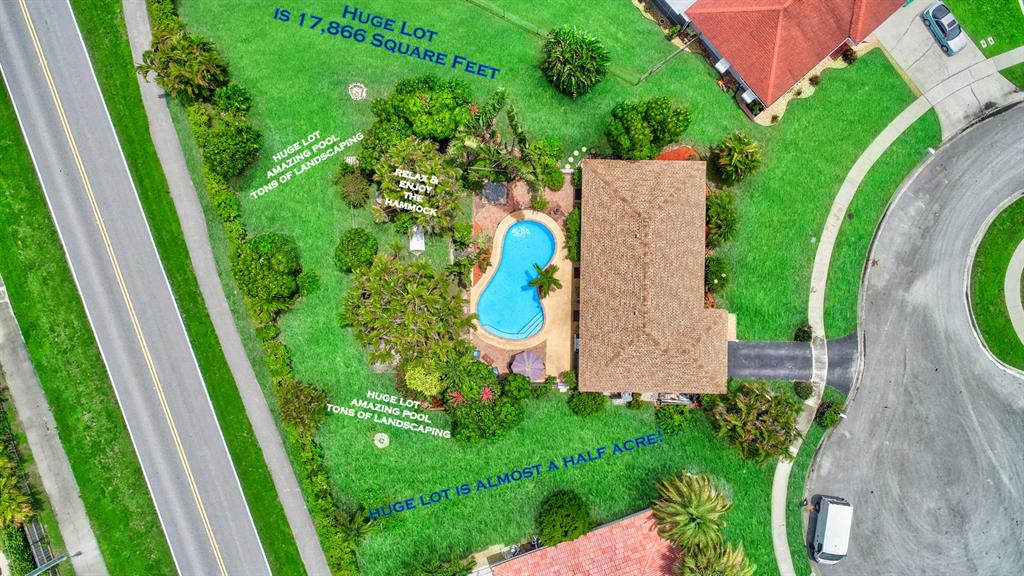 Spacious, open & bright 3 bedroom/2bath/1car garage Pool Home on one of the biggest lots in Palmetto Pines Plus on a cul-de-sac. The lot is 17,866 square feet! Almost a half-acre! New Roof from June 2019! Newer windows and ''Full View'' French doors, Saturnian marble flooring on a diagonal throughout living area & crown molding. Fabulous updated kitchen with 42'' maple wood cabinets w/pull out drawers, granite countertops, Stainless appliances including Stainless French door refrigerator w/double drawers, tile backsplash, Medallion inlay, recessed lighting & Big pantry. Master bedroom has French doors to the back patio and pool area & a walk-in closet. Master suite and guest bath are both updated. Huge living room/dining room has Double French doors w/picturesque ''Full View''