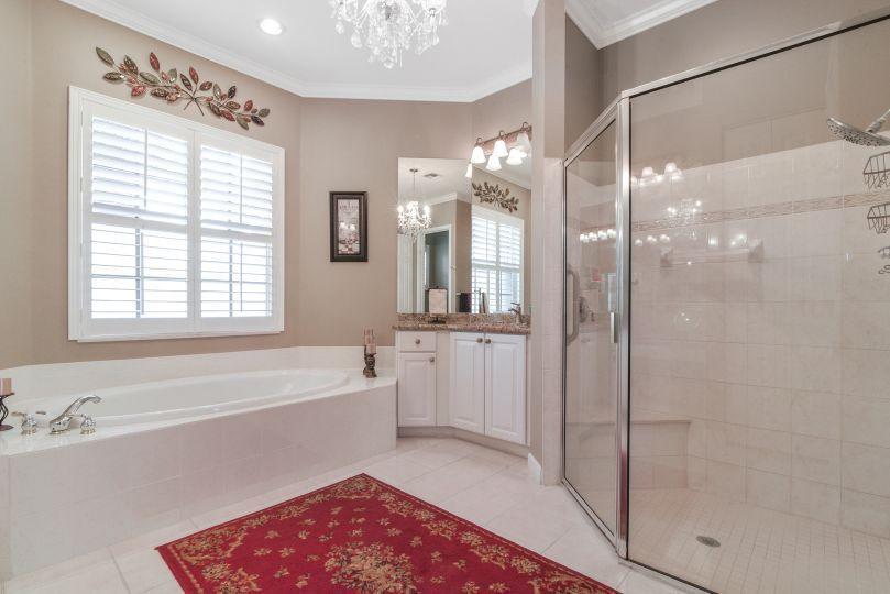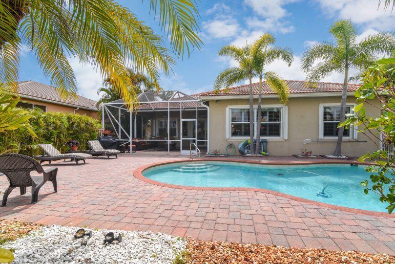 Gorgeous lakefront, pool home in resort style, active adult community (55+) The Estates of Baywinds! As you approach you will notice the lush landscaping & eye-catching curb appeal which set this home apart from the rest! Come inside and enjoy spacious living areas with gorgeous flooring, crown molding and plantation shutters throughout. The inviting kitchen boasts granite countertops and backsplash, newer stainless steel appliances and 42'' wood cabinetry with pullouts, a reverse osmosis water filtration system and lovely snack bar. All of the bedrooms are spacious as well and the master suite offers a walk-in closet with custom built-ins along with a luxurious master bathroom with granite, dual sinks, jacuzzi jetted tub and separate shower enclosure. Step outside onto a great covered