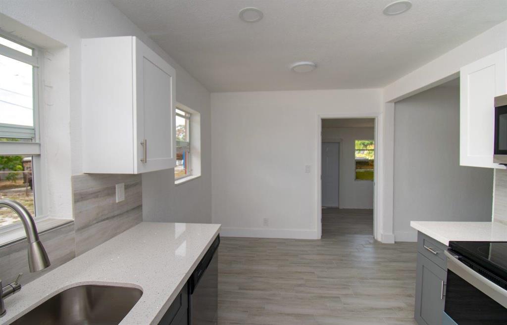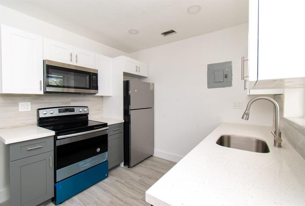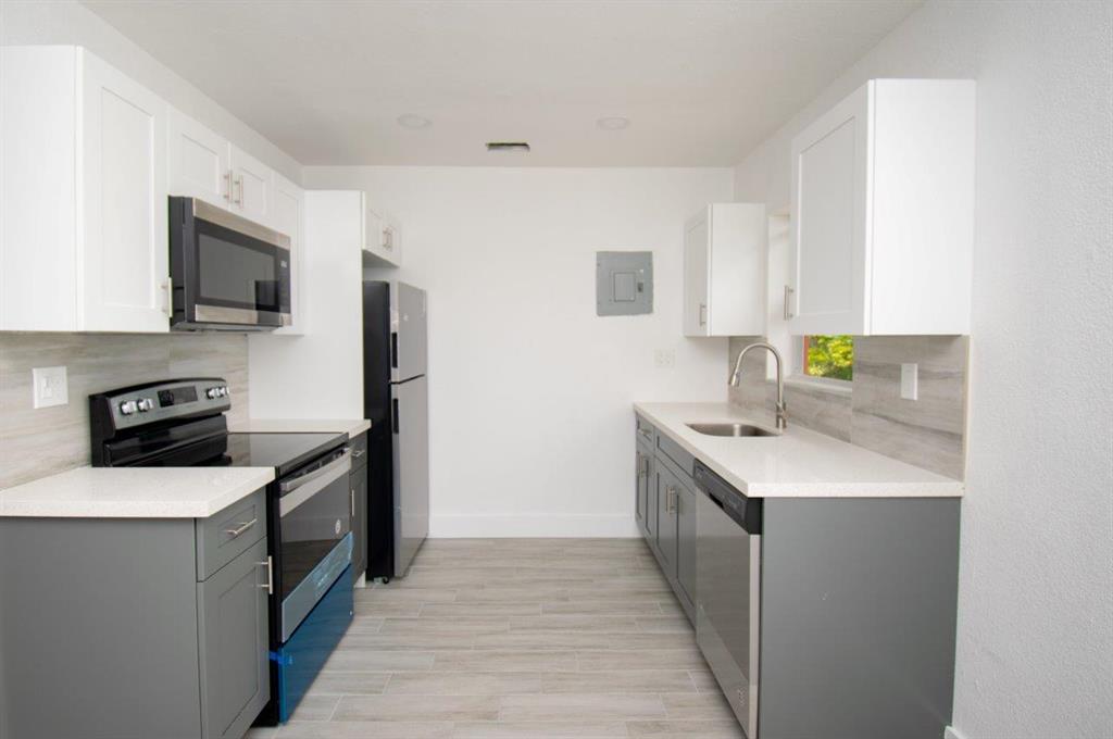 Beautifully remodeled 3/1, new kitchen, new bathroom, washer dryer hookup, new roof, new tile floor, new SS appliances, new fence, new central AC, outside balcony tiled, basically everything redone, move in ready.