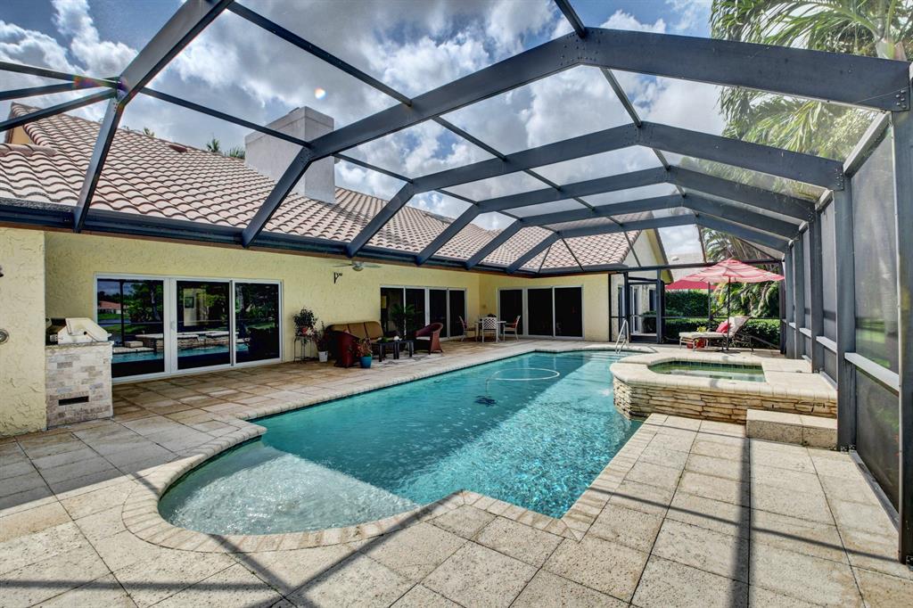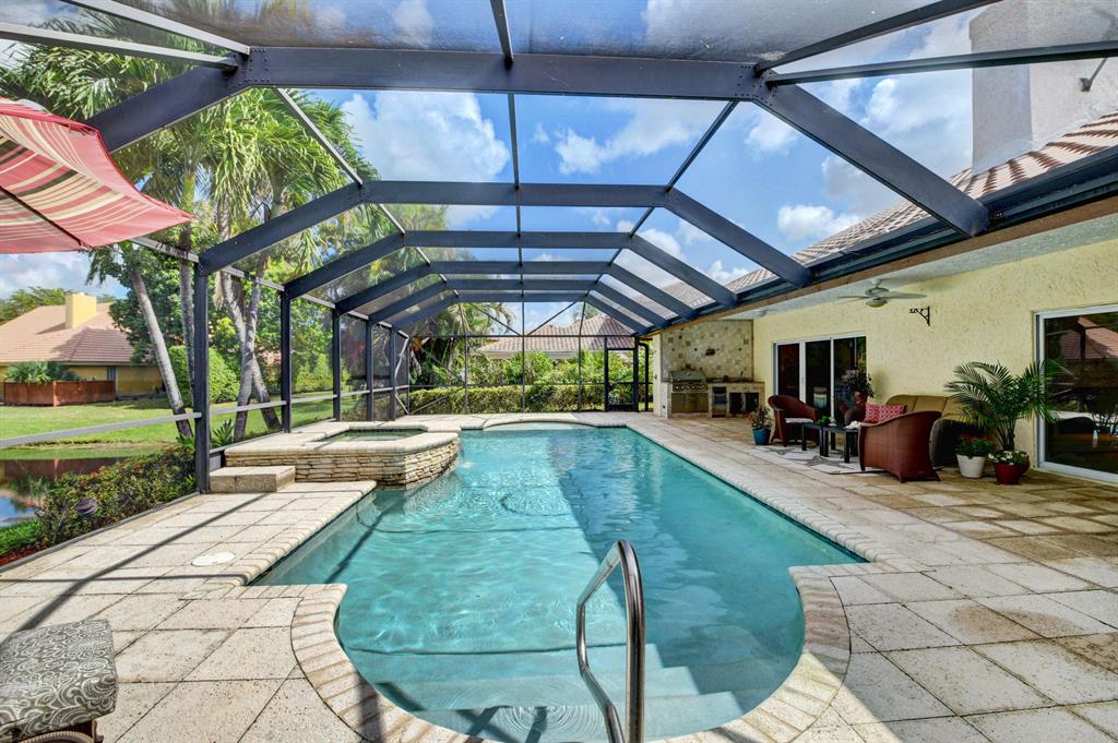 Amazing views of the lake.Single story four bedroom home w/ private pool & two car garage in Woodfield Hunt Club, a sought after community that is well-established w/ mature trees, handy to everything, great schools. 35KW whole house generator, w/ 500 gallon propane tank. 2, On-demand water heater's. Private heated pool w/ salt water system offers a spa, sun deck, newer pumps that can be run from an app on your phone. Outdoor kitchen under large covered patio great for entertaining. Screen enclosure replaced and is hurricane resistant. Beautiful custom chefs kitchen w/ marble floors, Thermadore gas range, kitchenAid refrigerator, lg dishwasher, custom vented hood w/ heat lights. Dual A/C's One replaced in 2014 & one in 2010. The house is fully storm protected w/ impact glass and shutters.