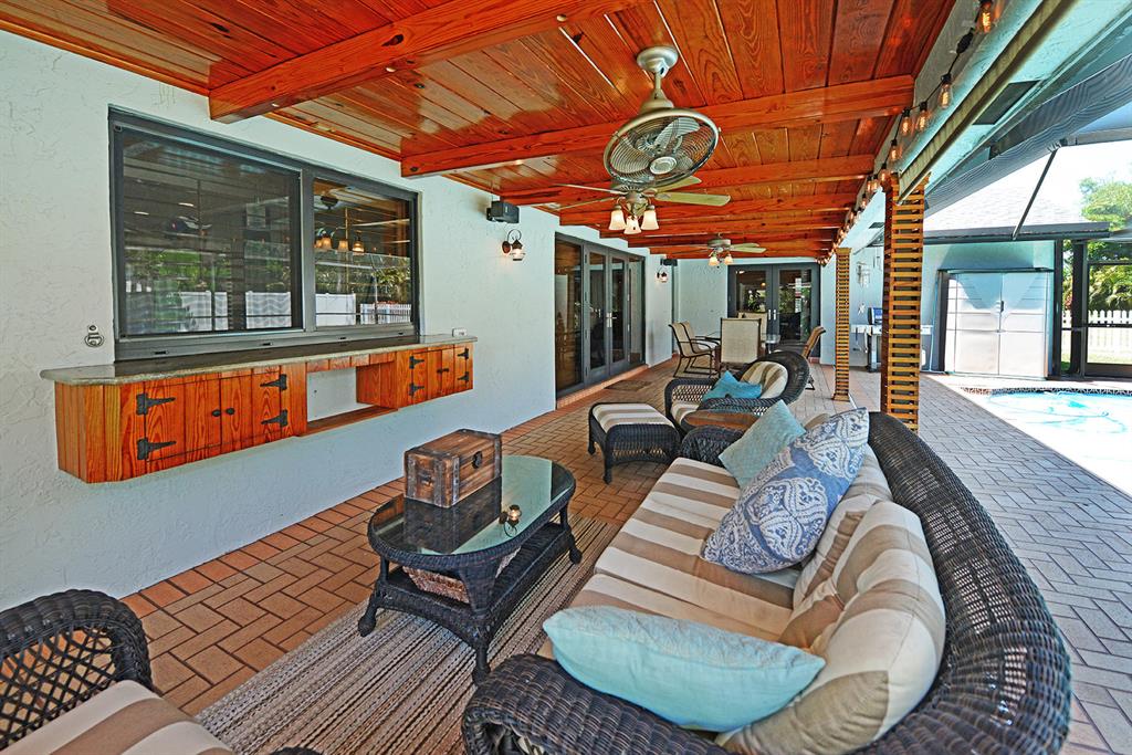 Fantastic opportunity to own a spacious pool home on a well maintained oversized lot. This home features an extra large chef's kitchen featuring granite counters, island stove top, built-in convection oven, microwave, warming drawer & extensive cabinetry. The laundry room has also been updated to match the kitchen. The entire home has been freshly painted and adorned with beautiful plantation shutters. Enjoy an added bonus of the home theater room with an 80 in screen and electric recliners. This room can easily be made into a fifth bedroom as well. Outside you will find a large covered patio with a newly resurfaced pool and solar heater! New A/C, newer hurricane impact French doors and windows, and a brand new roof!