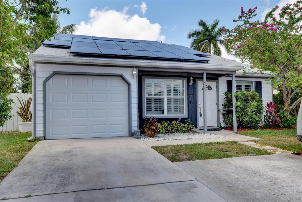 NEW 6.4 kW SOLAR SYSTEM. YOU ARE SELLING BACK TO FPL WHEN THERE IS AN OVERAGE. NEW ROOF. AMERICAN HOME SHIELD WARRANTY COMES WITH THE HOUSE. MANY NEW RENOVATIONS - Kitchen, Dining Area, Bathrooms, Fresh Paint. Nest Thermostat. Rheem Hybrid Hot Water Heater, Ring Door System, and more. Great neighborhood and Great Schools. A/C six years old. Garage Door Opener. Yard Sprinkler system. HOA community pool. THIS IS A GREAT STARTER HOME. VAULTED CEILINGS WITH SPECIAL LIGHTING. KITCHEN HAS A REFRIGERATOR WITH WATER, ICE AND CAFE HOT WATER FOR COFFEE AND TEA. HOA IS TUDOR WOODS. REALLY NICE COMMUNITY POOL WITH CONTROLLED ACCESS. LOWEST HOA MONTHLY OF $78. FOR BOCA RATON THAT IS THE LOWEST FOR ALL YOU GET