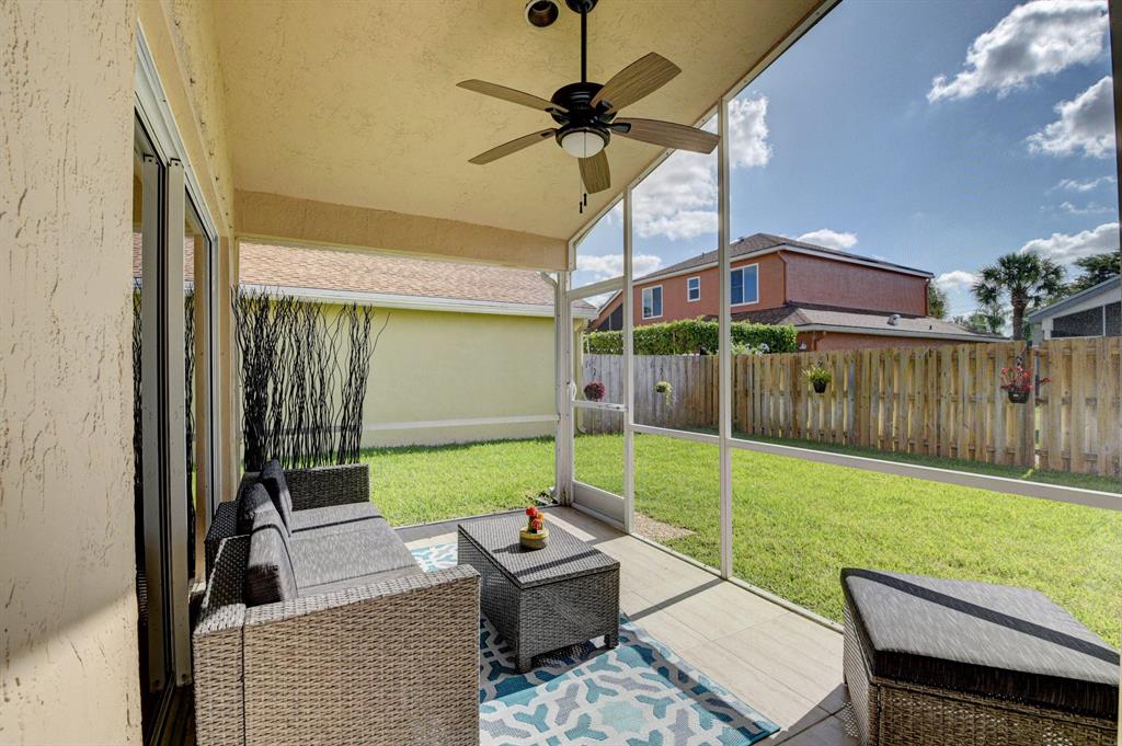 Move right into this updated and charming home! Updated Wood kitchen with stainless appliances. Large wall to wall porcelain tile, no carpets here! Fully fenced yard with Eastern sunrise and West sunset to take advantage of East/West breeze! Recently replaced AC unit. Vaulted ceilings create a spacious environment. Screened in patio plus an open air patio. Large Indoor Laundry room. 2 car garage. Boca Landings offers a low HOA and a nice community area with Olympic size Pool and a kiddie pool too! Basket ball, Tennis, racquet ball and a tot lot.