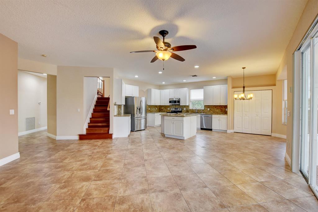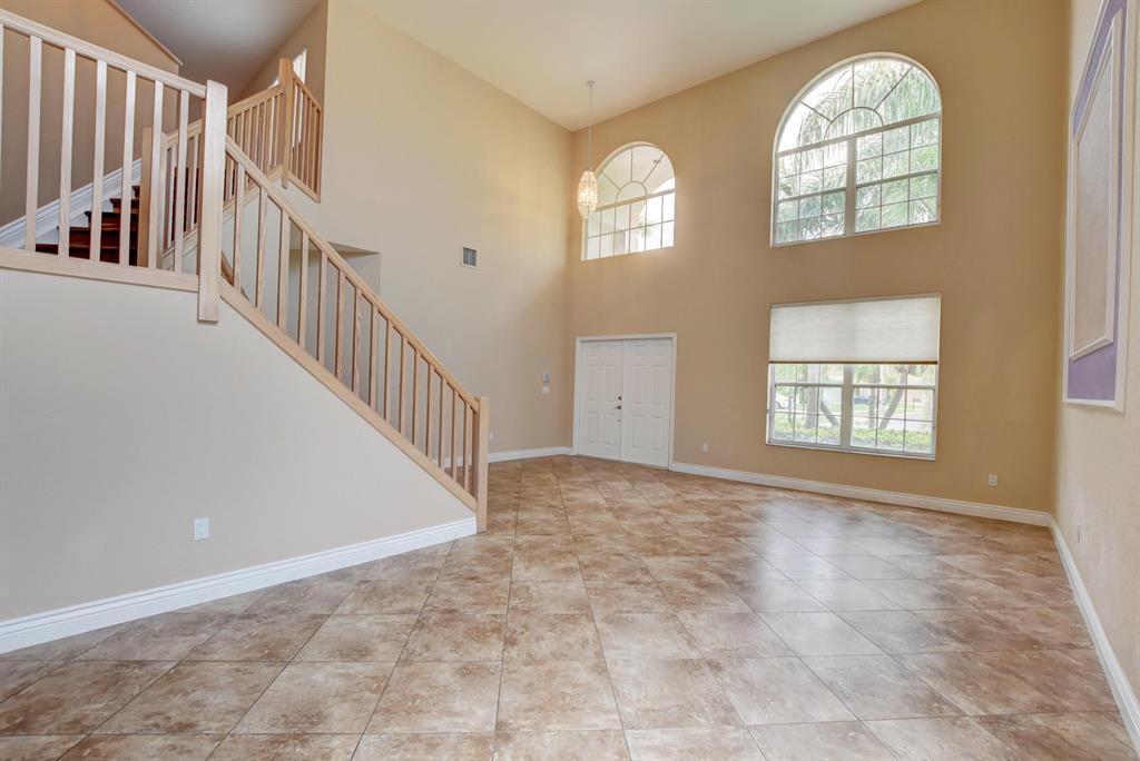 NEW PRICE IMPROVEMENT ON THIS LARGE HOME IN BOCA FALLS!! Shield Essential Home Warranty included with purchase! 4 Bed, 3.5 Bath, Lake Front home with top rated schools. Warm caramel tile throughout the first floor, and eye catching Brazilian Cherry Wood Flooring on the staircase, continues throughout the 2nd floor. The kitchen is perfect for entertaining, with granite counters, white wood cabinets, and stainless steel appliances. The impressive Master Bedroom is on the first floor, with dual walk in closets, and master bath with soaking tub, separate shower, and upgraded vanities. Half bath totally remodeled. 3 additional bedrooms and two full bathrooms on the second floor, along with a huge loft area. A screened patio, with pool, overlooking the lake completes this wonderful home