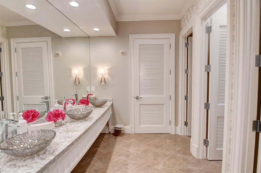 This Zen Transitional Masterpiece is appointed with the most stylish clean line appointments with warm touches. Featuring 5 bedrooms plus bonus room/office/den, including an expansive and luxurious master suite. No expense spared, with marble on the diagonal and wood flooring, stunning grey tones, driftwood feature wall in Dining room, and a gourmet kitchen with top of the line appliances, river rock backsplash, and granite countertops. Highlighted in the extraordinary master is a luxurious Master bath with a Jacuzzi tub, separate vanities with marble counter-tops and designer lighting, his and hers walk in closets, and a spacious sitting room. Set on a private lot with resort pool, impact glass, and full home generator. Phenomenal home with a cool flair.