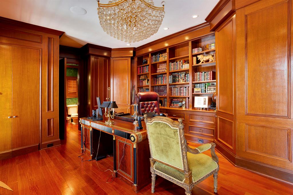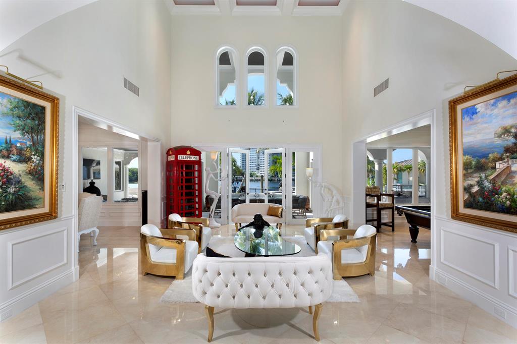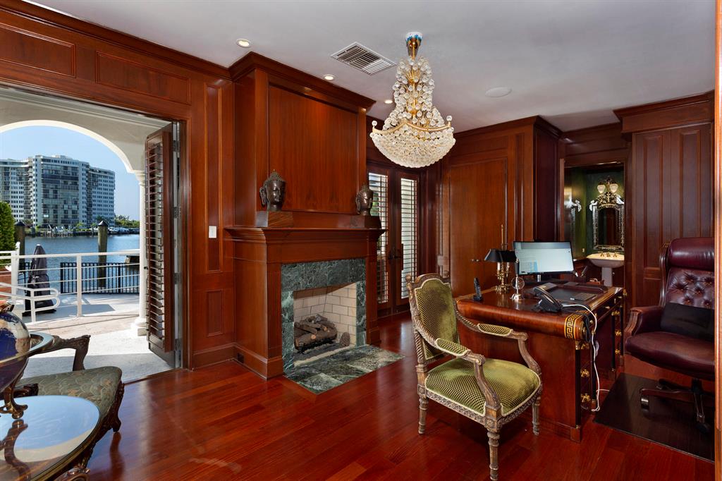 This impressive home is sited on a Prime Intracoastal Point Lot with 227' of wraparound waterfrontage with unobstructed views! Comprised of over 9,000+/- sq. ft. (6,600+/- under air), the bright interior features a gourmet waterfront kitchen open to the family room, a two story living room, grand dining room and a rich wood-paneled library/den all with stunning views. Upstairs, 3 large family en-suite bedrooms share a beautiful waterfront den and loggia. The private spacious master wing has its own private terrace and amazing water views. An infinity edge pool and spa, two covered loggias and multiple outdoor terraces provide resort-like entertaining space, all overlooking the 122 +/- ft. of protected dockage for a large Yacht!