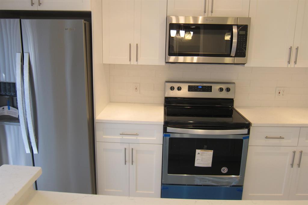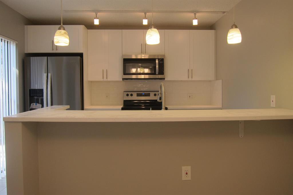 Totally renovated townhouse with 2019 new air conditioner, Hurricane shutters included. Custom kitchen cabinets, Quartz counters not granite ( upgrade) new lighting, new stainless steel appliances with warranties and papers still inside them. tile thru out the bottom floor. custom cabinets and matching Quartez in all bathrooms.