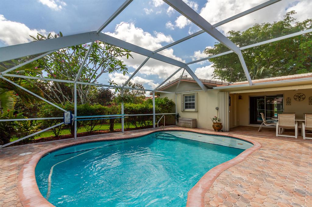 This is it! Immaculate and updated 3 bed, 2 bath waterfront home with screened salt water pool and no HOA! This home is nestled on a large lot with stunning mature trees and lush landscaping. As you enter you will notice neutral ceramic tile on the diagonal running throughout the living spaces and newer lush carpeting in the living room that leads to the beautiful screened patio and pool area.The kitchen features updated cabinetry, granite counters, breakfast bar and tile backsplash. The enormous master bedroom has durable wood-look flooring, multiple closets and an updated en-suite bathroom with relaxing theme. The 2 additional bedrooms also feature durable wood-look flooring and ample closet space and the second bathroom has been stylishly updated. Solar hot water heater for savings.