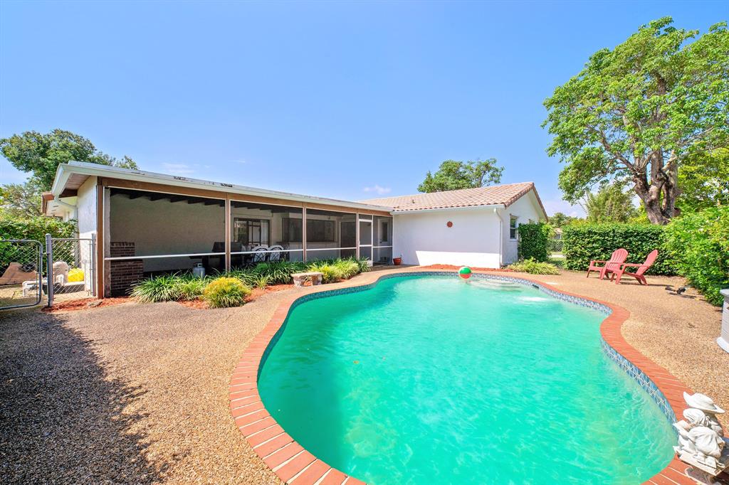 CORNER LOT IN CORAL SPRINGS WITH NO HOA. This 3 bedroom 2 bath pool home is located on an oversized corner lot in Westchester. This large home has an updated kitchen, split bedroom plan, formal living room and dining room. On the outside you will enjoy: large circular driveway; freshly painted; screened in back patio overlooking a free-form pool. NO HOA. This home is close to all top rated schools, entertainment, shopping and all major roadways. This is must see home.