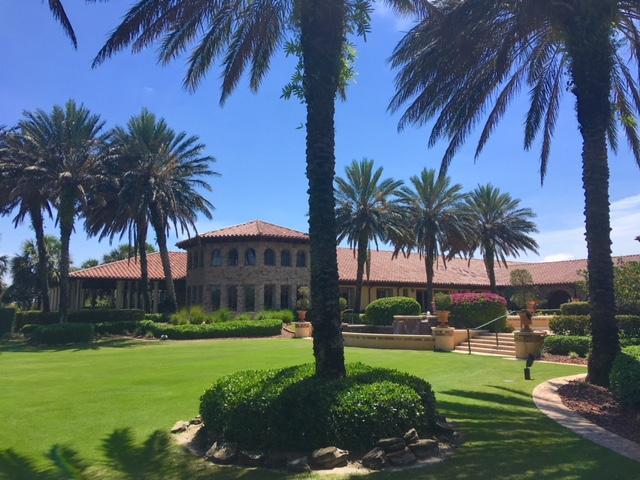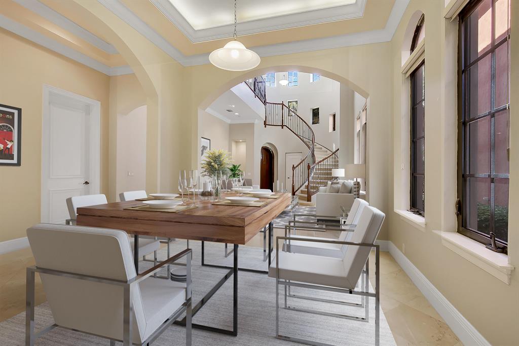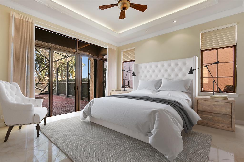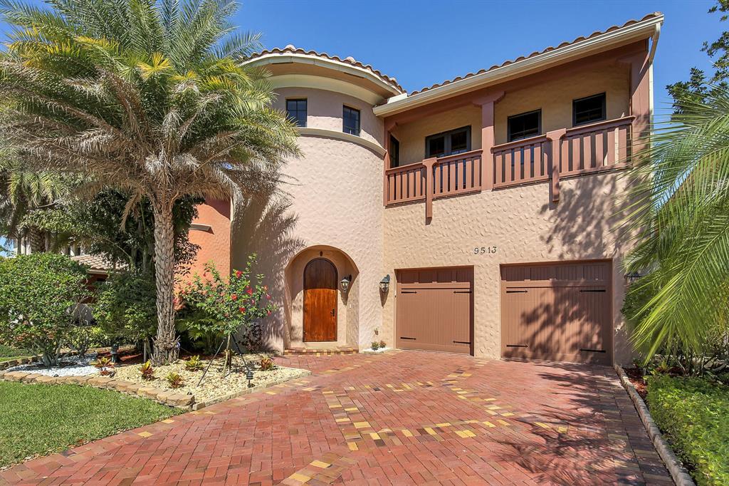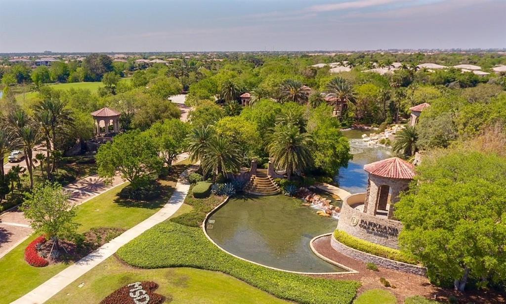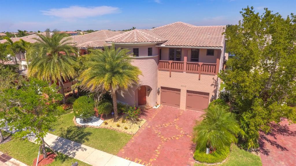This Spanish style estate boasts spiral stairs within its tower, 24' ceilings & glassy marble floors. Other features include, serene lakefront, screened & heated pool & spa, ground floor master suite, a palatial master bath with Jaccuzi tub, enormous bonus/entertainment room upstairs (could be 5 & 6th bedroom). Upgrades abound: Granite counters, rich wood cabinetry, crown moldings, tray & coffered ceilings, stainless appliances, arches, IMPACT GLASS throughout, customized closets, fully fenced yard. HOA fees of $555/mo include use of the country club recreational facilities, state of the art fitness center, salon spa, yoga and other classes, 3 restaurants & so much more. PGCC's grounds are enchanting and is the background for countless wedding photos.