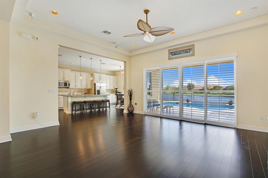 SMART HOME! The owners meticulously cared for this spectacular 4 bedroom home with 3 car garage, salt water pool and peaceful eastern lake views. This Monaco model offers an open floorplan with hardwood floors, upgraded kitchen cabinetry featuring top/bottom soft close, 12 foot ceilings, plantation shutters throughout, his/her walk-in closets, newly replaced carpet, garage cabinetry, large laundry room and newly replaced landscaping/accent lighting. The smart home can control AC, lighting and irrigation all from an app on your phone. PortoSol is a gated community with a resort style clubhouse including a state of the art fitness center, heated pool/ jacuzzi , clubroom with TV, billiard table, basketball court, tennis court, game room, children's playground, sidewalks and fitness trails
