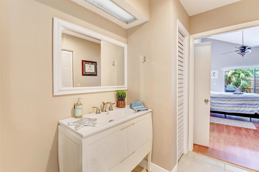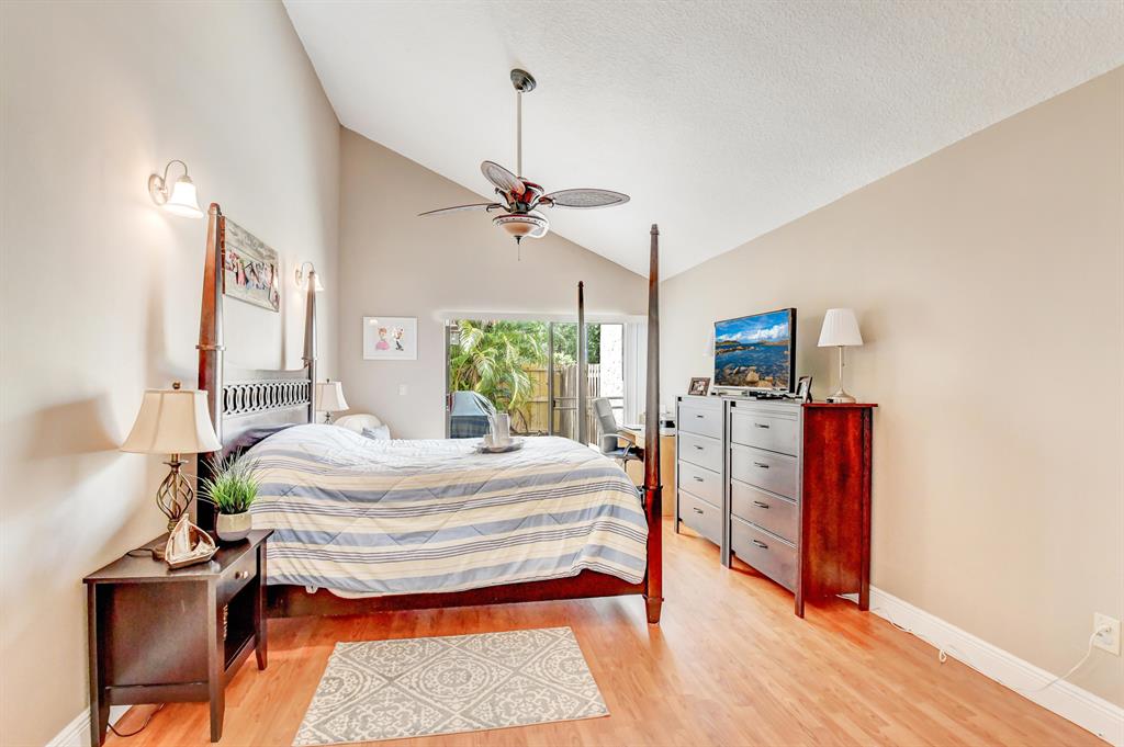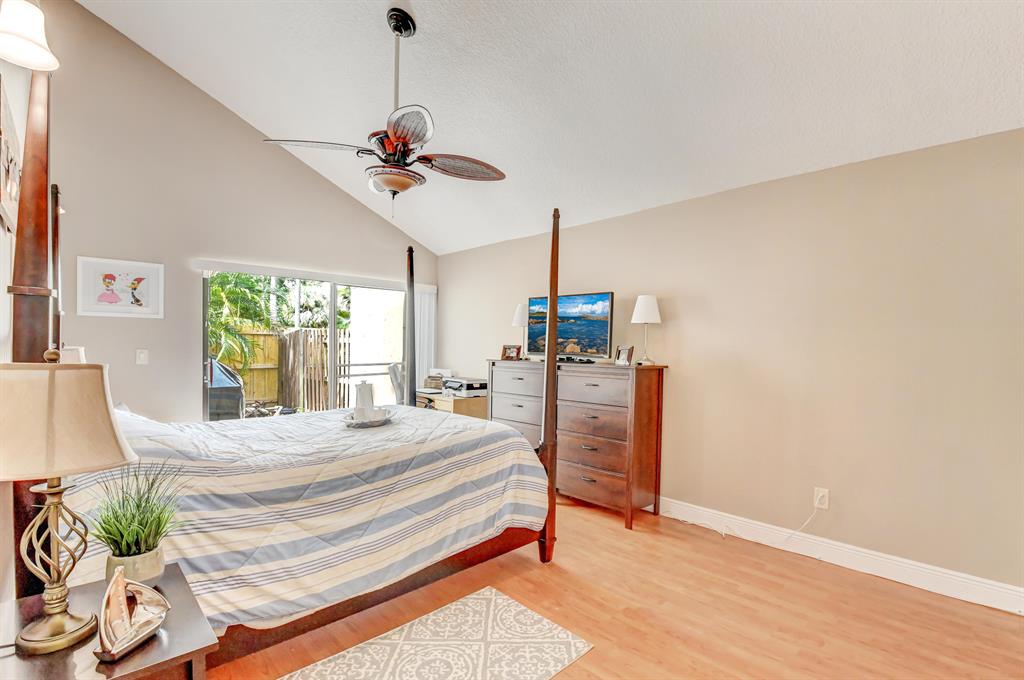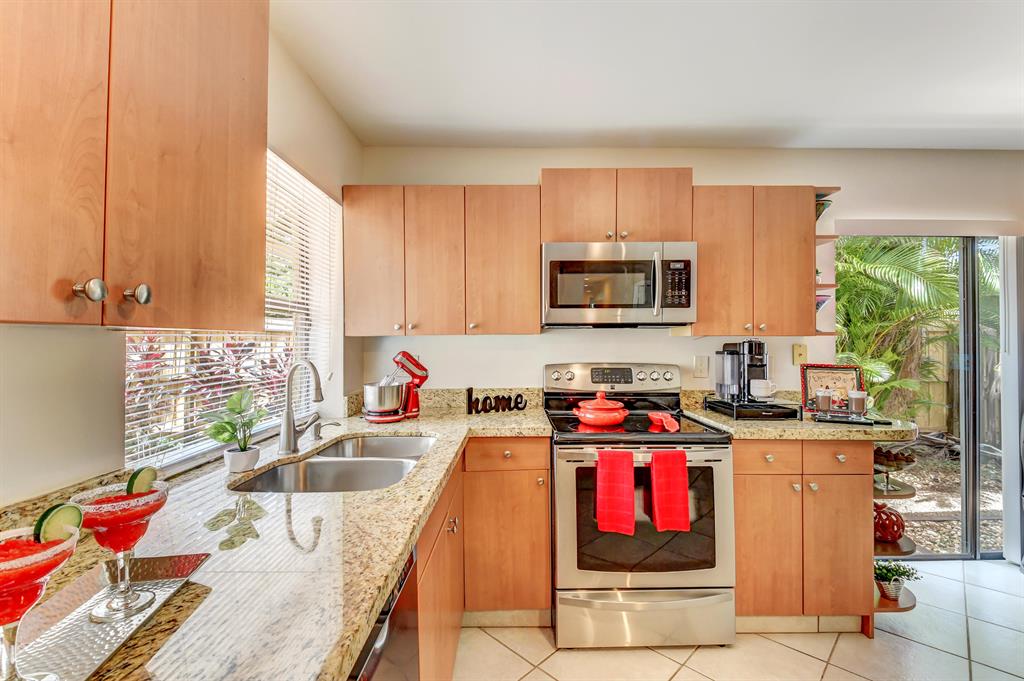 Centrally located in Boca Raton,one story Villa/Townhome w/vaulted ceilings (no popcorn) & open floor plan. Walk in through your own gated private courtyard w/spa. Featuring 3 bedrooms, 2 updated bathrooms & 1 car garage. Updated huge kitchen with stainless appliances, granite counter tops, new cabinets with tons of storage, wine fridge, a convenient window pass through that has access to the patio/sliders from kitchen as well. The living room is open and features high ceilings, a fireplace, tons of light from all the windows/sliders, a sky light and French doors. The living area features tile flooring on a diagonal and the bedrooms feature laminate flooring. Huge master bedroom with walk-in closet, patio off the master, Master bath with dual sinks. Large private patio that backs up