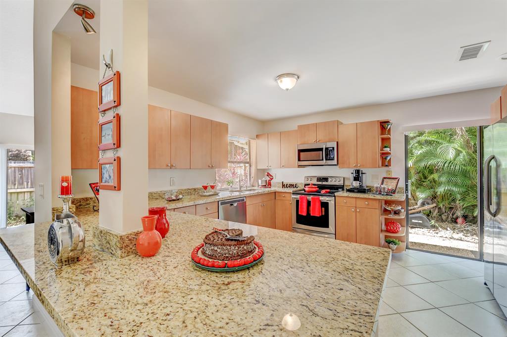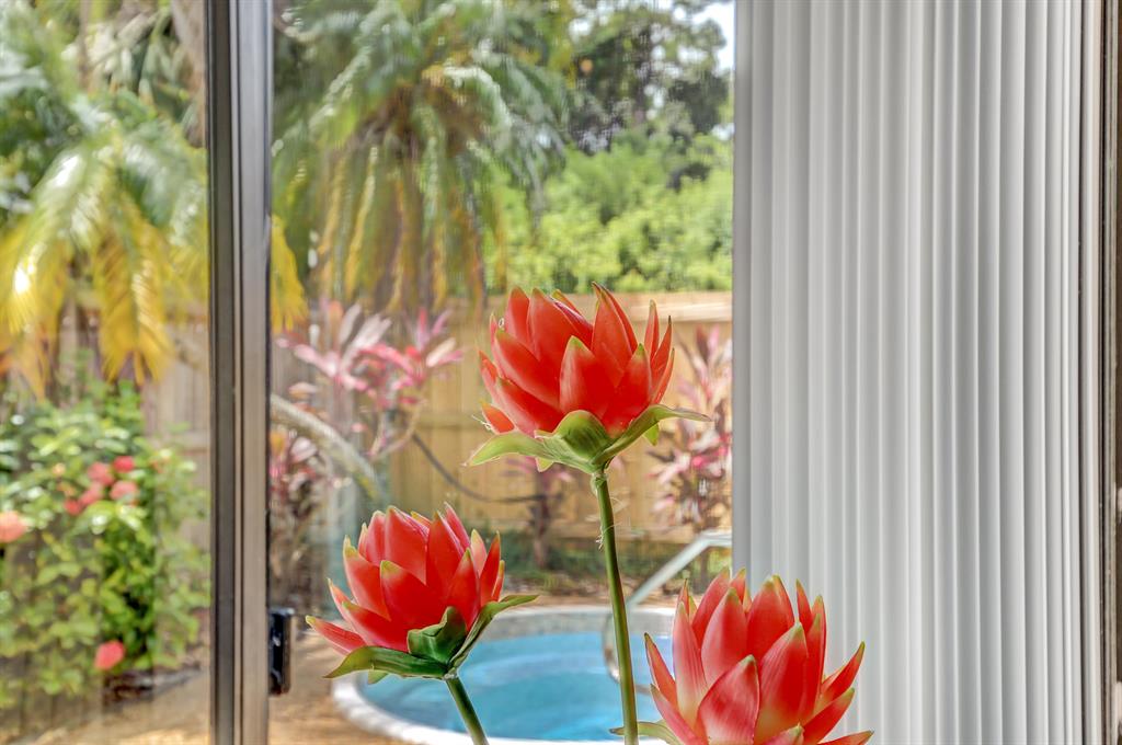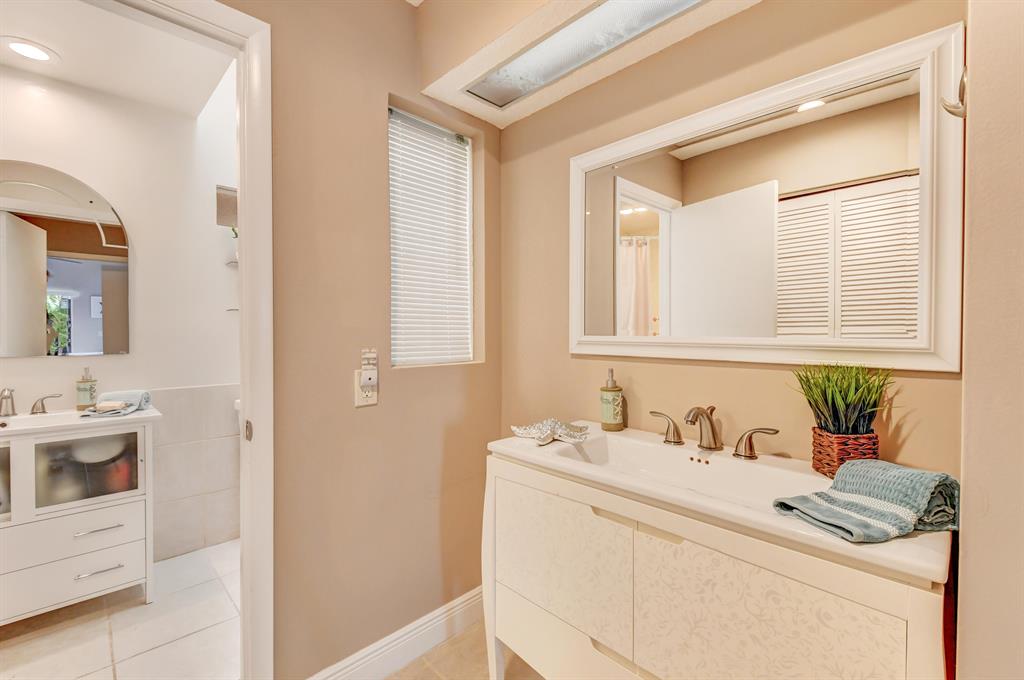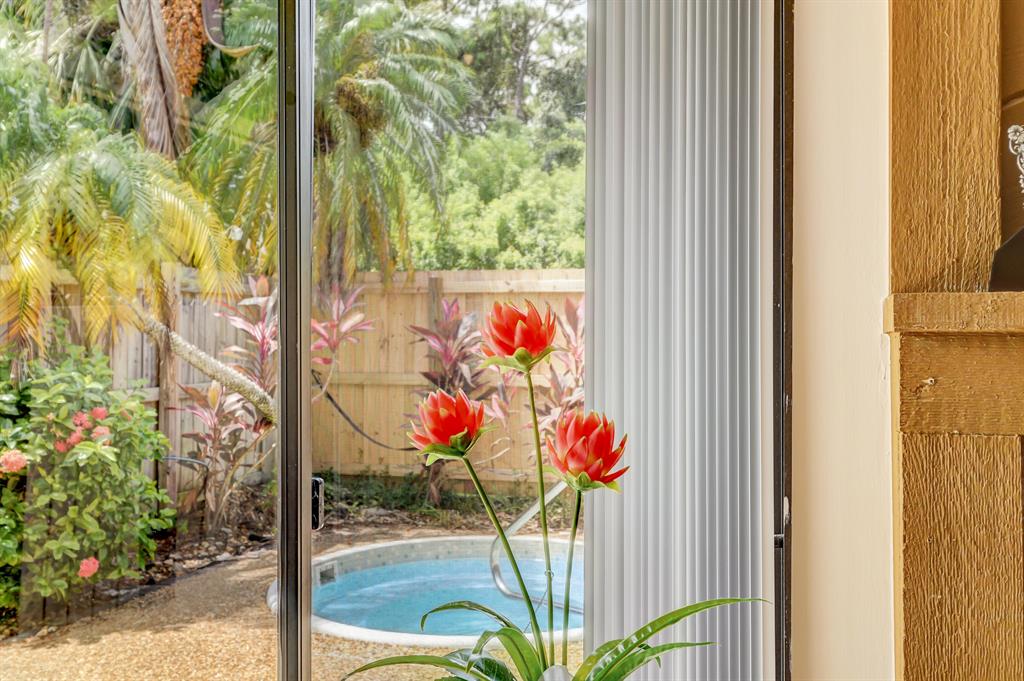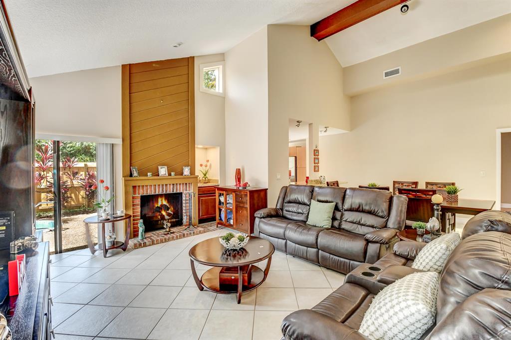 Centrally located in Boca Raton,one story Villa/Townhome w/vaulted ceilings (no popcorn) & open floor plan. Walk in through your own gated private courtyard w/spa. Featuring 3 bedrooms, 2 updated bathrooms & 1 car garage. Updated huge kitchen with stainless appliances, granite counter tops, new cabinets with tons of storage, wine fridge, a convenient window pass through that has access to the patio/sliders from kitchen as well. The living room is open and features high ceilings, a fireplace, tons of light from all the windows/sliders, a sky light and French doors. The living area features tile flooring on a diagonal and the bedrooms feature laminate flooring. Huge master bedroom with walk-in closet, patio off the master, Master bath with dual sinks. Large private patio that backs up