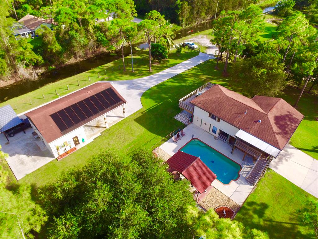 THIS IS TRULY A PROPERTY THAT WILL BE APPRECIATED WHEN SEEN !!! THIS ADORABLE HOME HAS IT ALL !! NESTLED ON AN OVERSIZED CORNER LOT 1.47 ACRES - THIS WELL MAINTAINED 3 BEDROOM 2 BATH POOL HOME WITH FRONT SCREENED PORCH, BACK PORCH AND PRIVATE BALCONY OF MASTER PLUS SEPARATE 1 BEDROOM APT GUEST QUARTERS ON 1ST FLOOR WITH PVT SCREENED SITTING AREA. AND FOR HIM- HUGE DETACHED CBS WORKSHOP/ MANCAVE WITH COMPRESSOR, WATER AND ELECTRIC !! THIS HOME IS SITUATED ON A QUIET STREET WITH NO REAR AND EASTERN NEIGHBORS. WITH NO HOA- THIS IS SUITABLE FOR A HOME BASED BUSINESS REQUIRING A LARGE DET BLDG. BRING YOUR RV, BOAT OR TRAILER. THE 2 CONCRETE DRIVEWAY WITH 2 GATE ENTRANCES CAN HOLD UP TO 12 CARS !! DESIGNER KITCHEN WITH GRANITE, STAINLESS APPL, ISLAND WITH COOK TOP AND 42 '' CABINETS !!