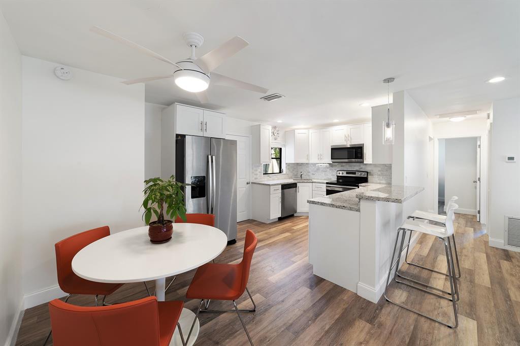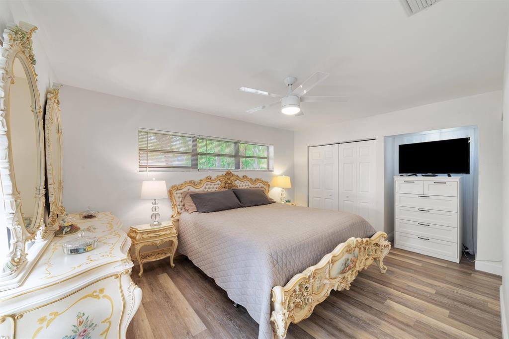 This beautifully remodeled 3 bedroom 2 bathroom split floor plan home is situated in a great east Boca location with NO HOA. As soon as you walk in, you'll notice how meticulously it's been maintained. It was remodeled from top to bottom in 2018. The home showcases stunning high quality light colored wood vinyl flooring throughout. There are recessed lights in the living room and kitchen. The kitchen is equipped with stainless steel appliances, gorgeous light granite counters and back splash, raised white 42'' cabinets and a window facing the backyard. Both bathrooms are finished with Italian tile and granite top vanities. The master bathroom offers a walk-in shower with seamless glass shower door. 2 linen closets by the guest bedrooms are great for additional storage. Relax or invite