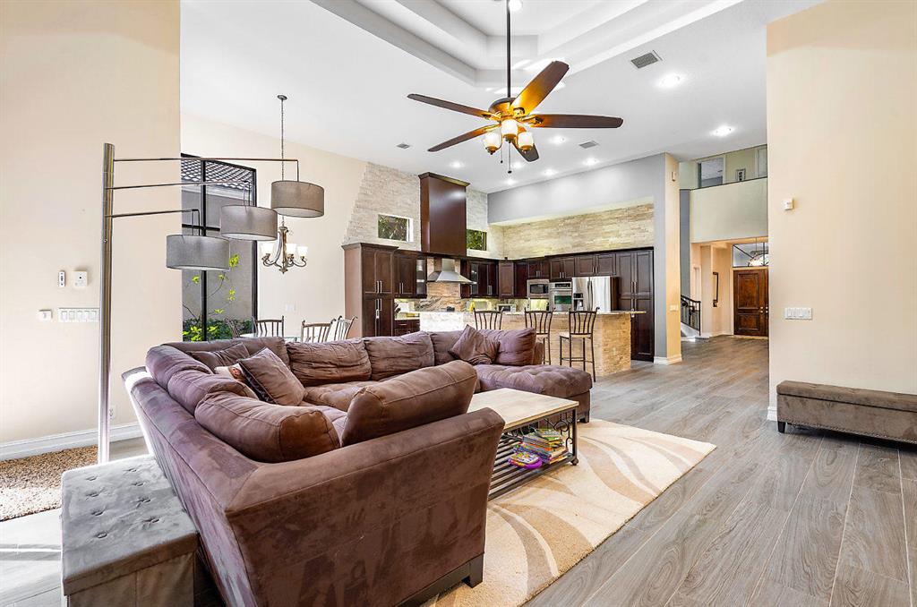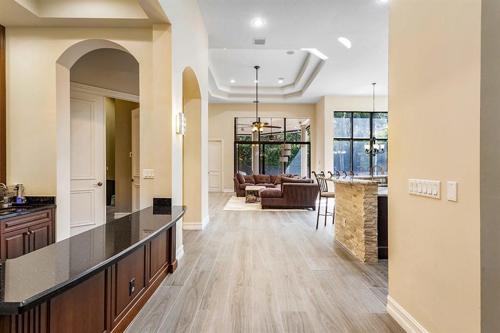 Best deal in The Oaks! Outstanding community with top amenities. Beautifully renovated 5 br, plus office and loft! 100K in upgrades over the past 2 yrs. New kitchen featuring top of the line appliances including a 4 burner Wolf cook top with griddle. New porcelain wood look tile (large plank). Kitchen and family room with gorgeous stone accents. European cabinets and designer quartz counter tops. Fabulous full bar with wine cooler. Automatic drop down screens for covered patio. Luxurious master suite with gracious master bath. Hurricane impact glass and Kevlar hurricane protection. Whole house generator on natural gas. The Oaks features one of the finest clubs in the area. Full service restaurant (The Oak Room)and lounge. Traditional/Modern styl