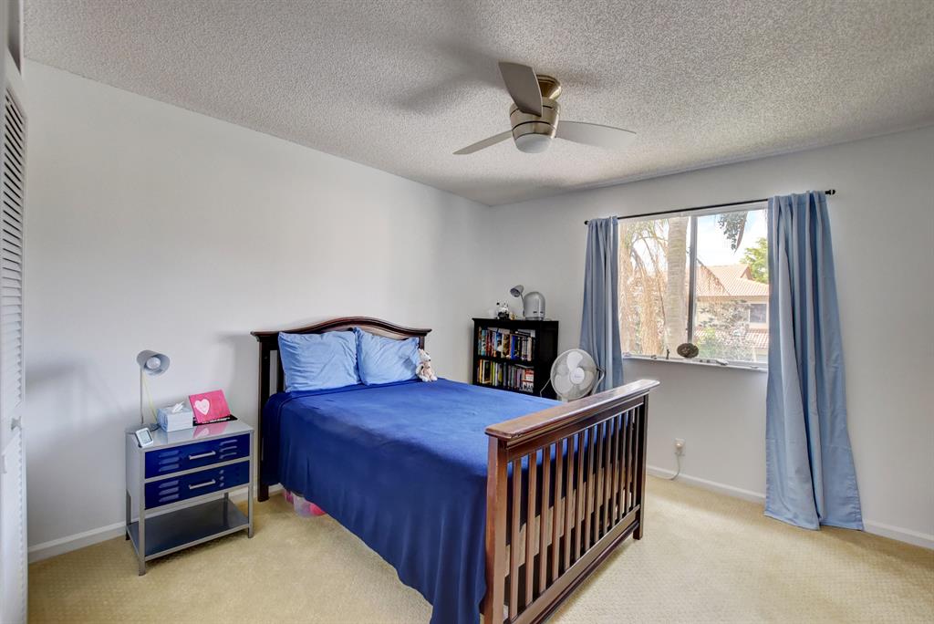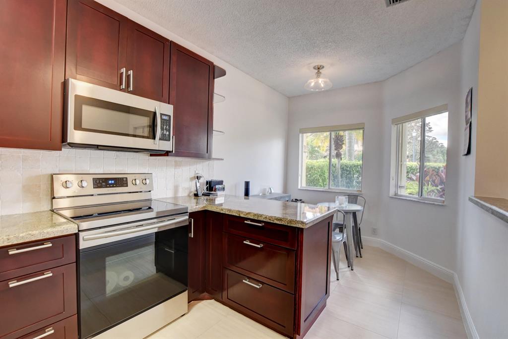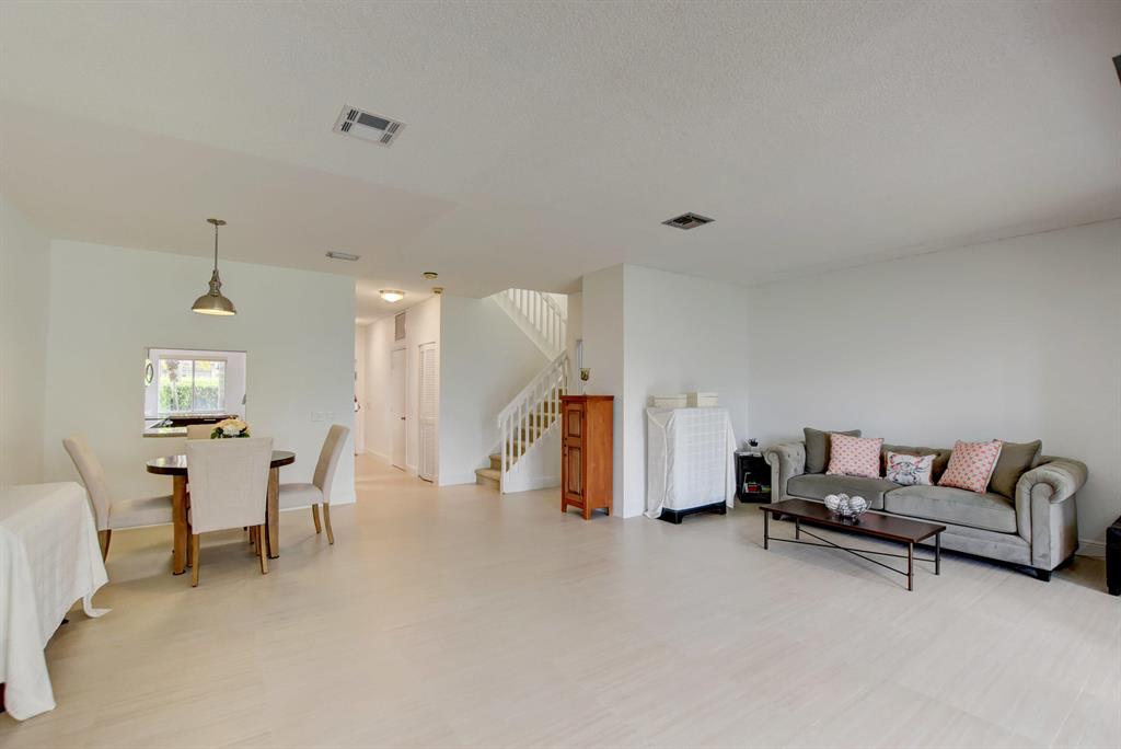 Light, bright and spacious 3 bedroom, 2.5 bathroom townhome with large enclosed sunroom/patio in highly desirable Boca Pointe. Beautifully upgraded eat-in kitchen with wood cabinets, granite countertops, stainless steel appliances and a Culligan water purification system. Open floor plan with new 24'' neutral tile flooring on main level, lush carpeting in bedrooms, freshly painted, updated fixtures, large master with walk-in California closet, numerous skylights for great natural light. Stunning lake view with lots of privacy. Accordion hurricane shutters throughout. This all age community offers a fantastic renovated entrance, manned guard gate and community pool just steps away. Optional golf, tennis, & social memberships available. A rated schools! A fabulous community to call home!