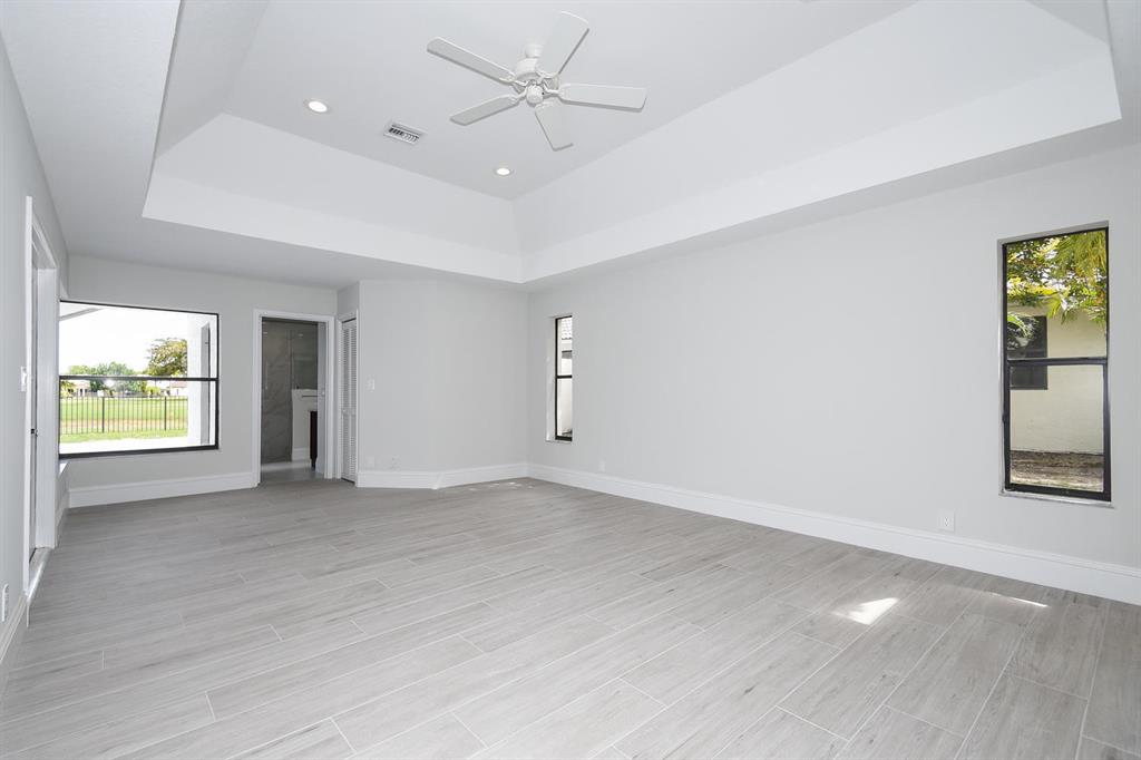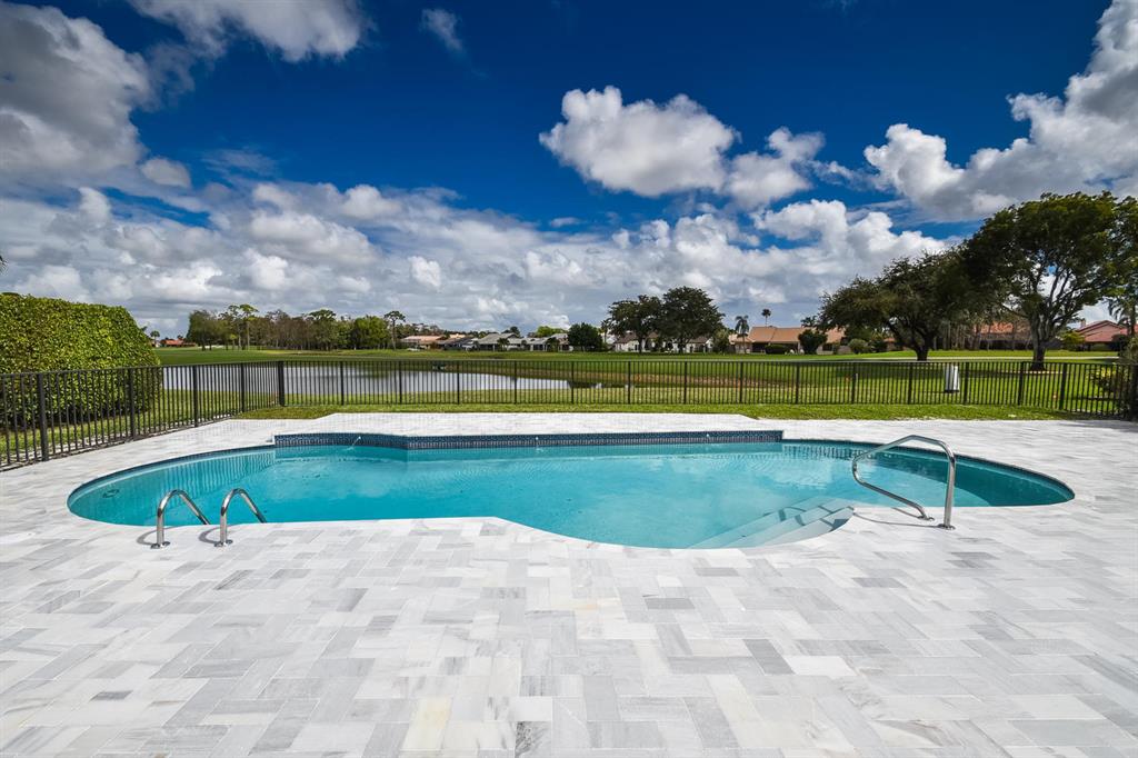 Mandatory golf membership $65,000. Beautiful contemporary with designer finishes. Stunning 3 bedrooms with 4 full baths. His & her luxury baths. Sited on large interior lake lot with golf course views. Porcelain plank floors. New appliances. Over sized pool with new marble travertine pavered pool deck and driveway. $30,000 refunded at the sale of your home. Two 18 hole golf courses along with full country club amenities. Boca Woods is an all age community close to parks, shopping houses of worship, I95 & Tpke. Yearly dues $15309 + dining minimum of $1500 yearly. Non tipping club. Assessment $84 monthly. JOA $301. Includes 24 security, cable & internet. Great Tennis. Consult manager for tour of club.